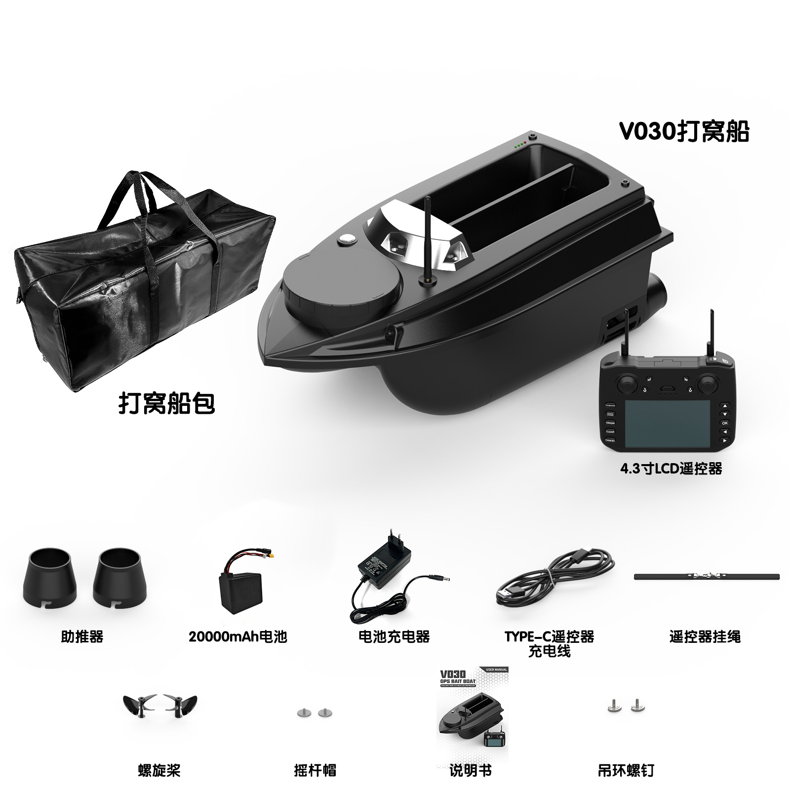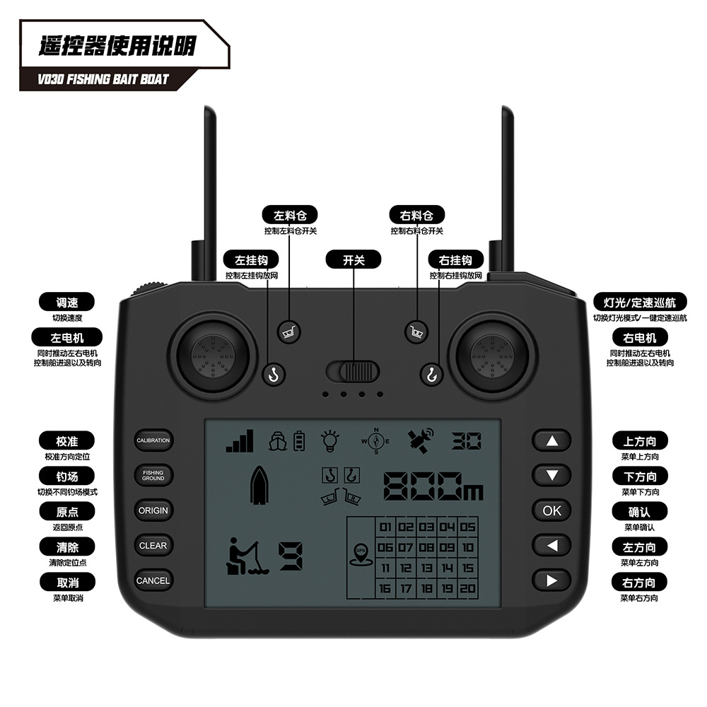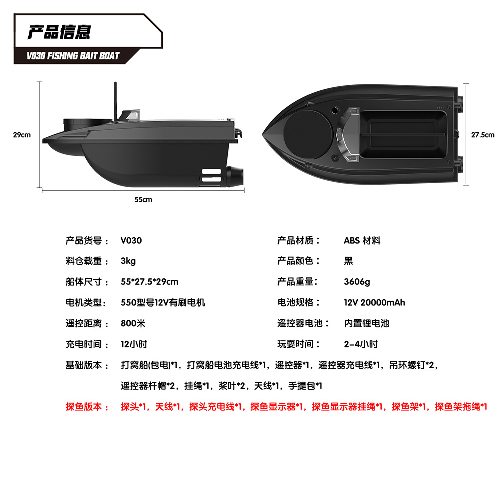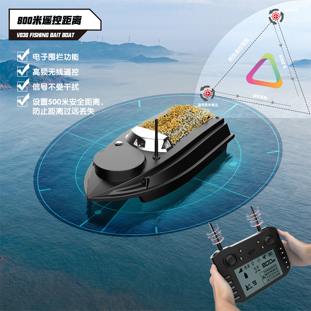 V030大尺寸9钓场180点GPS定位12V高速脱钩拉网双仓打窝船