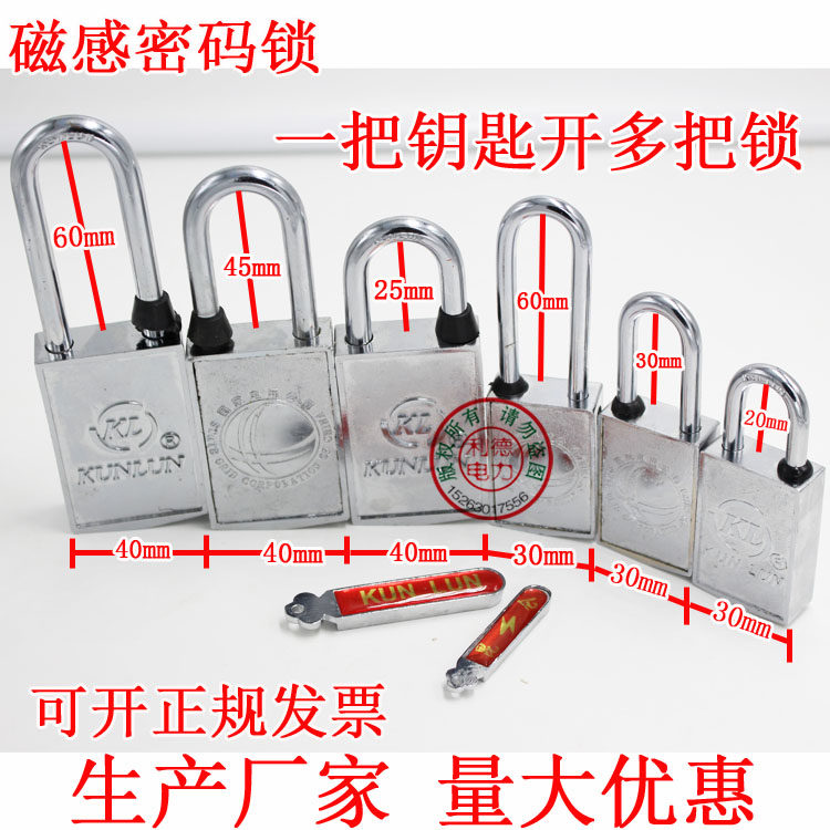 40mm磁感密码锁 磁力锁磁条钥匙 通开通用钥匙挂锁 中国移动联通电信专用锁