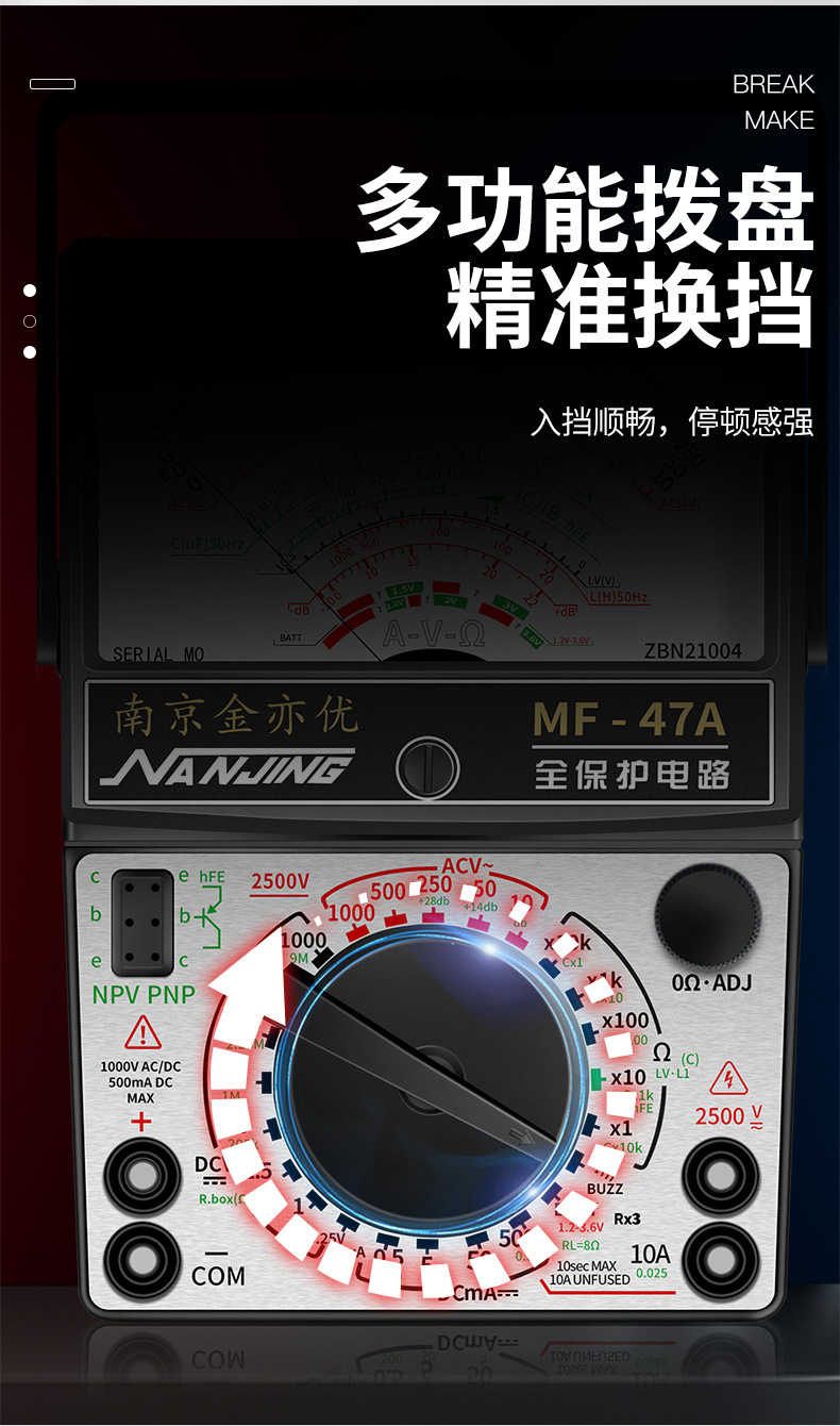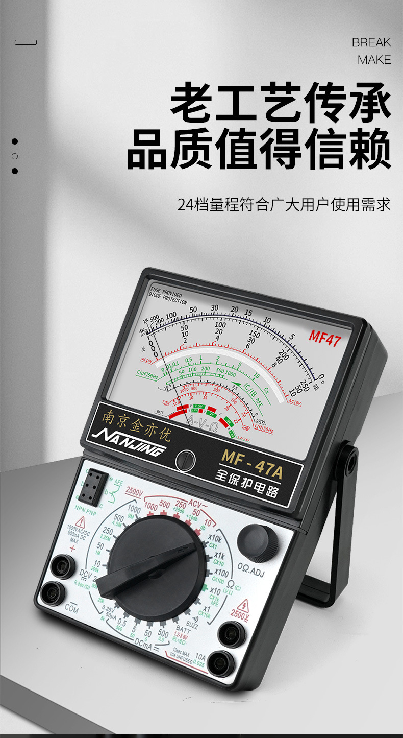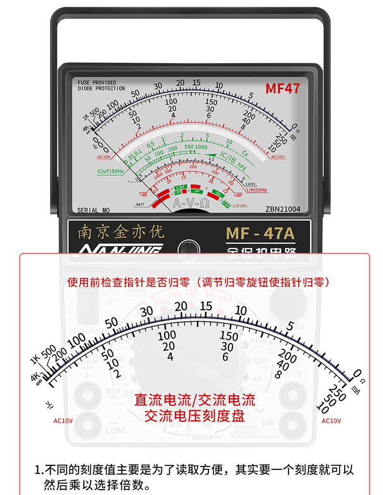 Jin Yiyou Nanjing MF47 Magnetic Analog Universal Meteran Presisi Tinggi Tipe 47A Pendulum Mechanical Universal Kuno