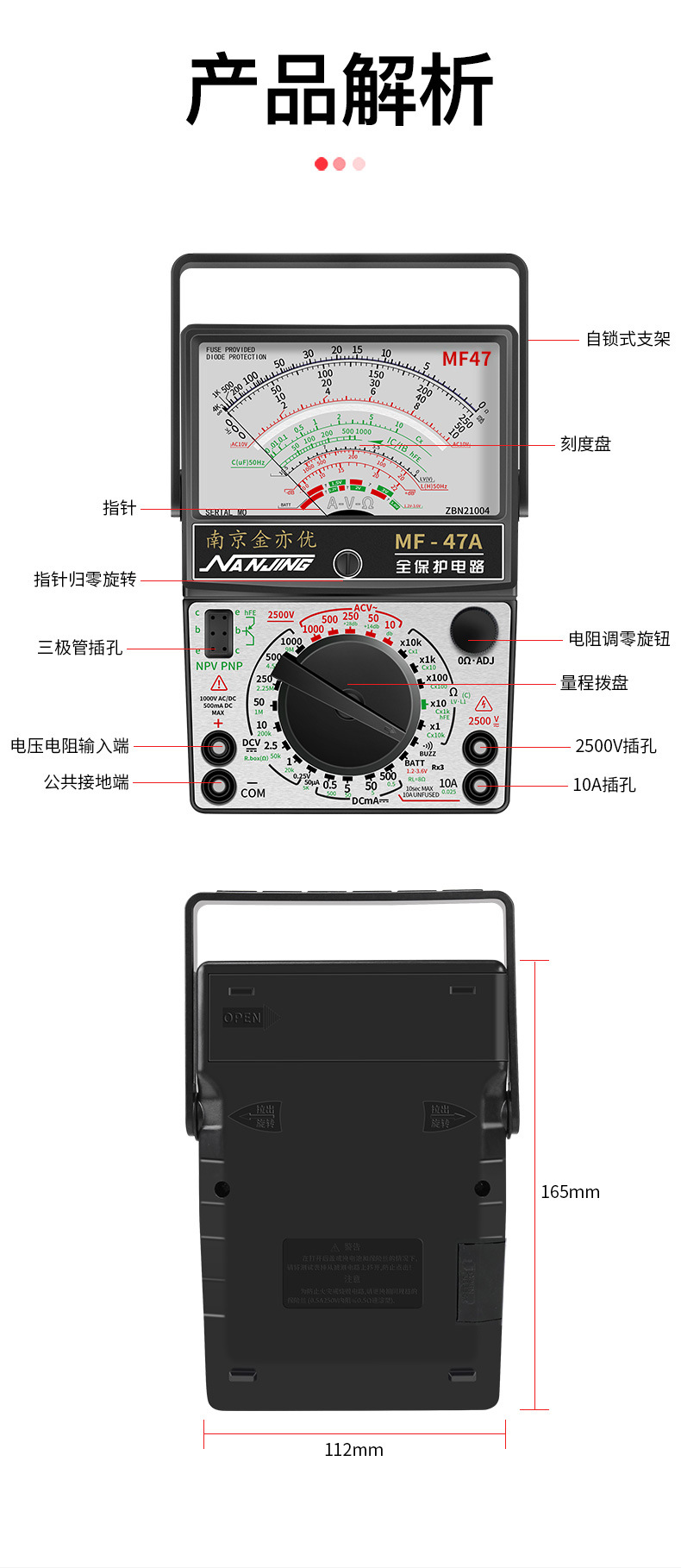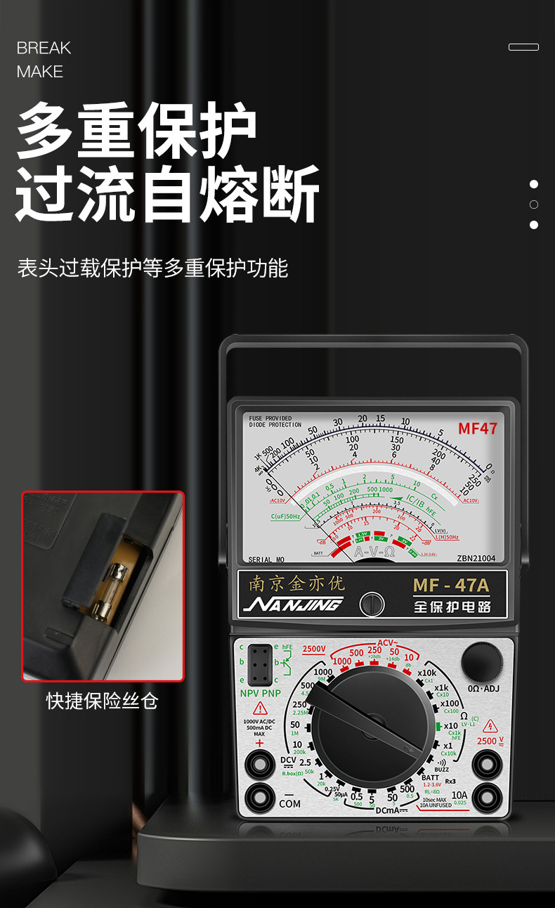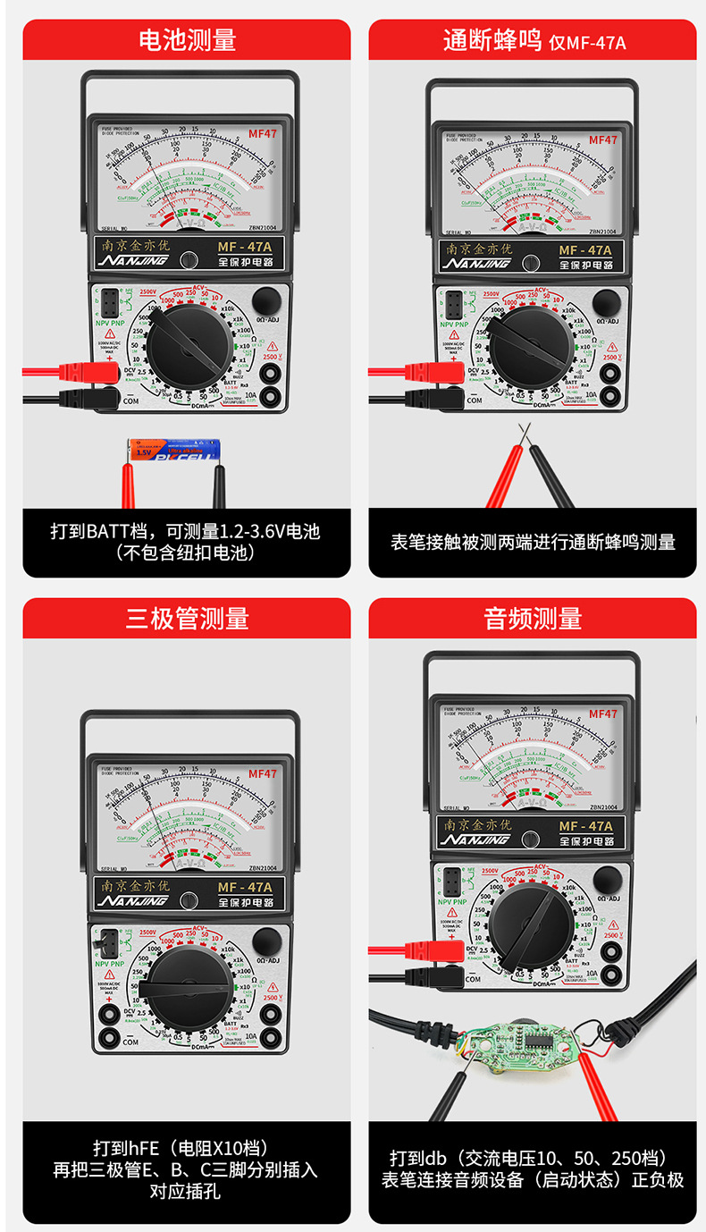 Jin Yiyou Nanjing MF47 Magnetic Analog Universal Meteran Presisi Tinggi Tipe 47A Pendulum Mechanical Universal Kuno