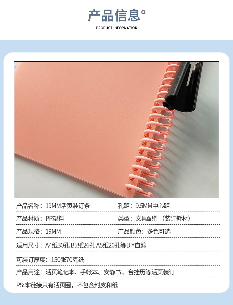 Grosir cincin longgar a4 19mm30 cincin 5 lubang plastik B5 gesper pengikat cincin A5-20-hole notebook klip dapat dilepas