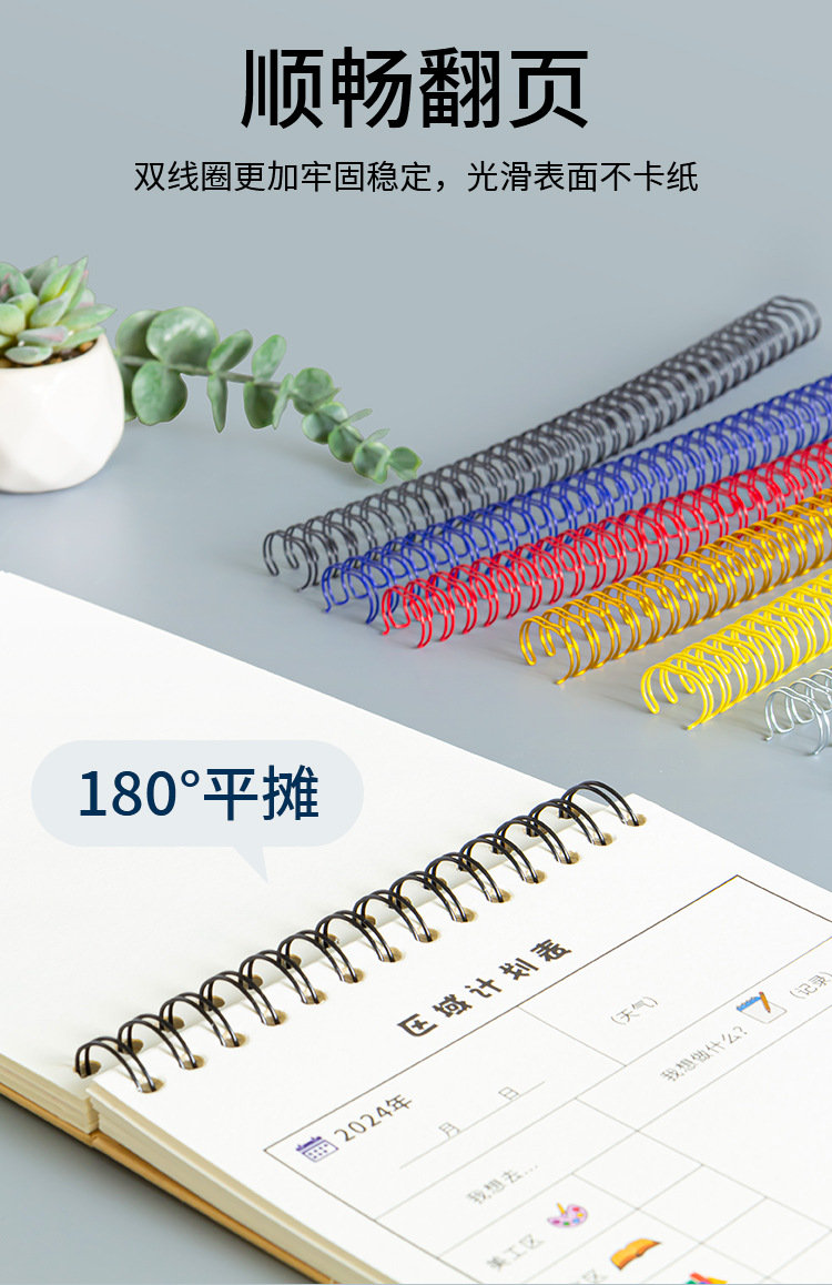 Lingkaran Besi A4 Cincin Kalender Meja Logam Coil Ganda 34 Lubang Notebook Lingkaran Kalender A5 Lingkaran Kalender