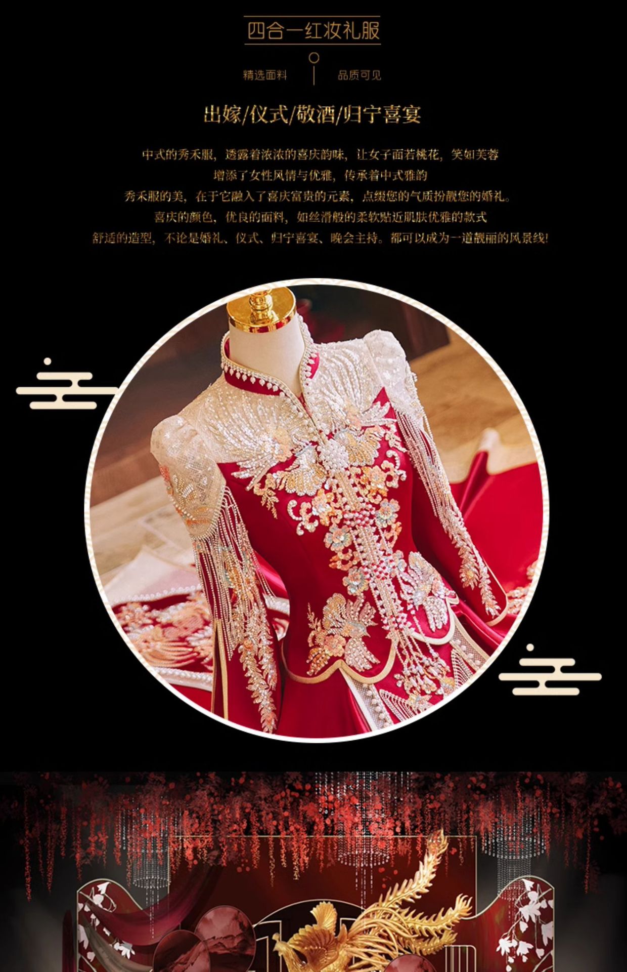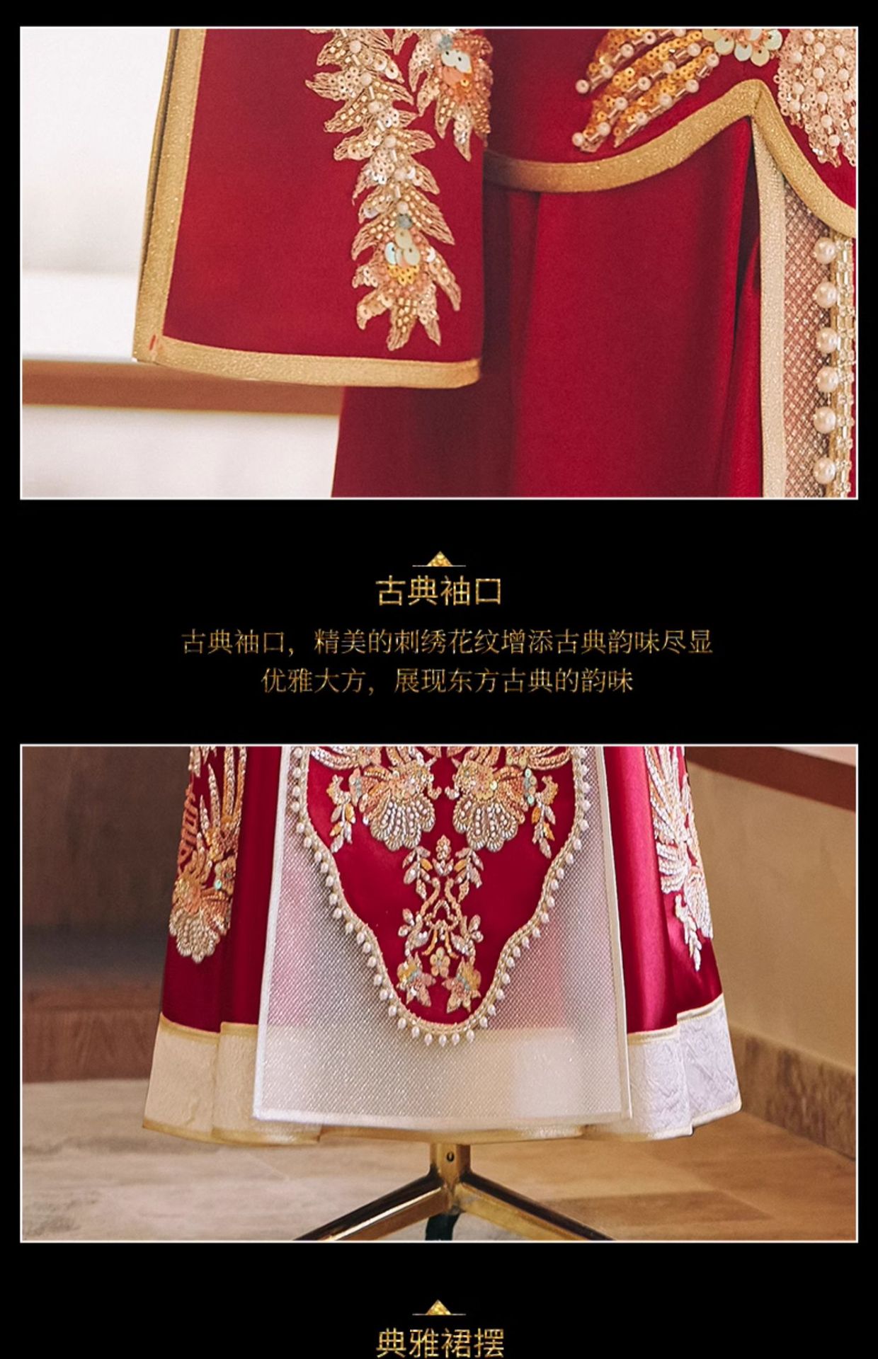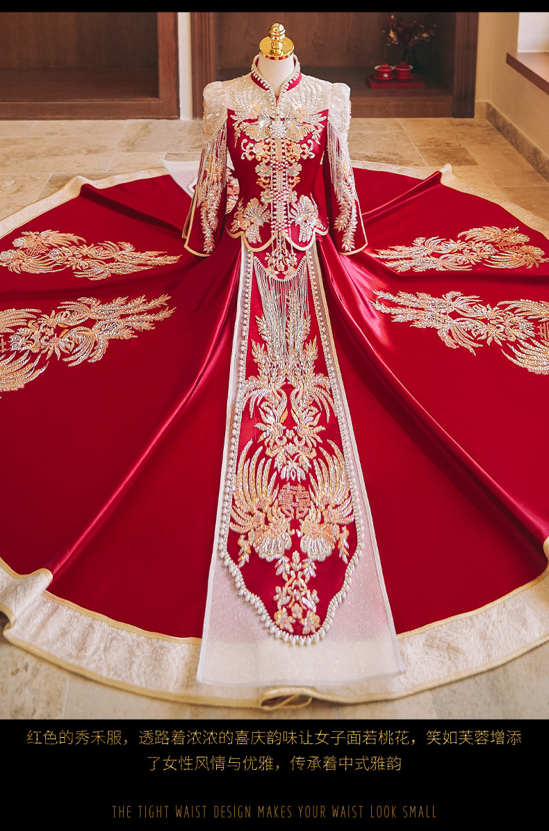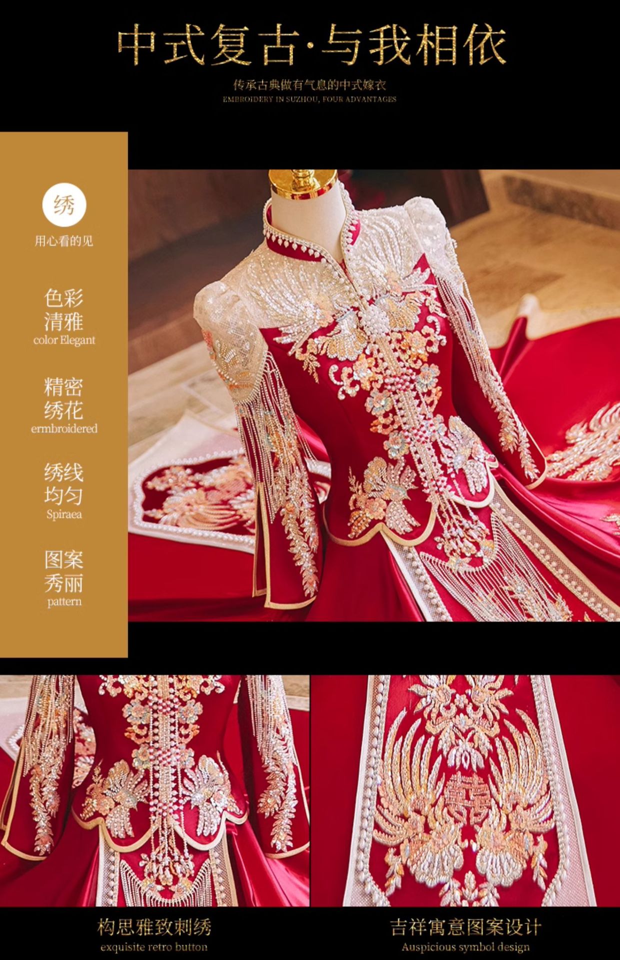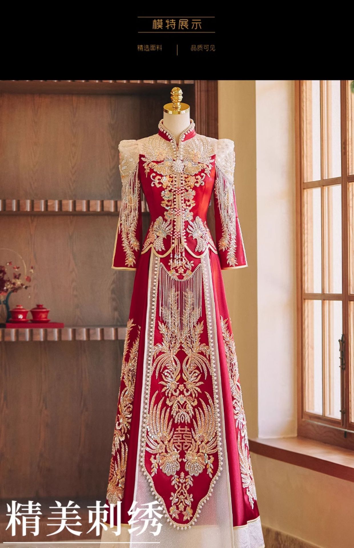 Exoge gaun pernikahan Xiuhe, gaun naga dan Phoenix baru 2024, gaun pernikahan pengantin Tiongkok, mahkota phoenix industri berat kelas atas