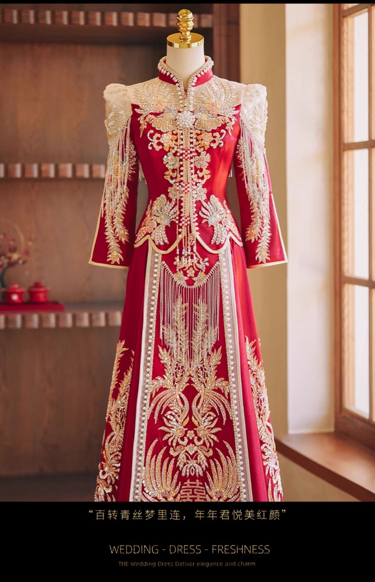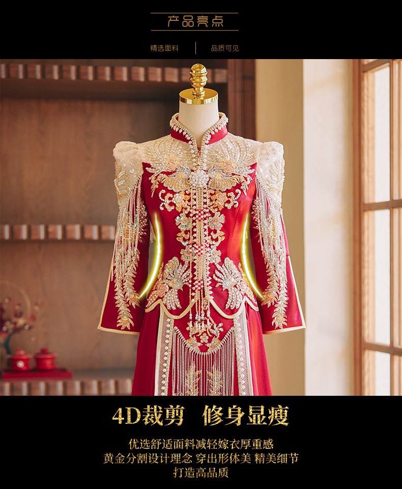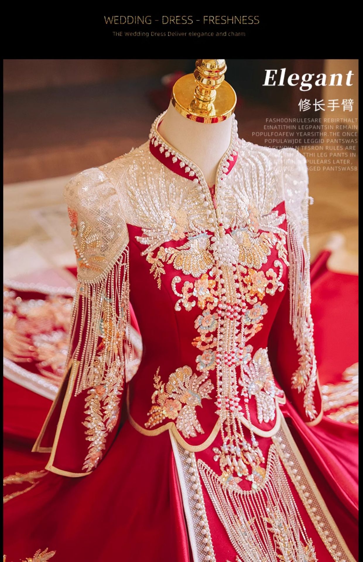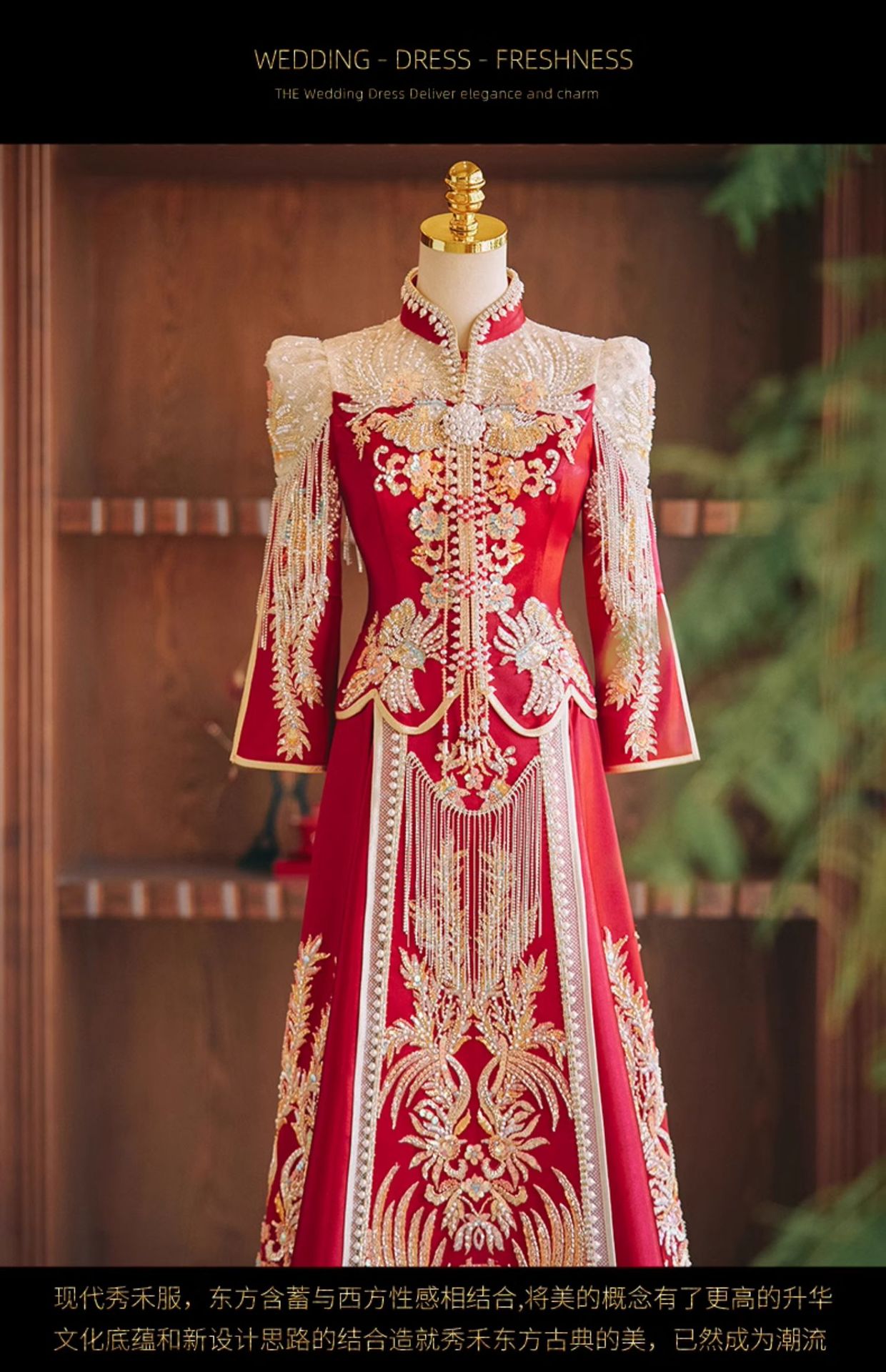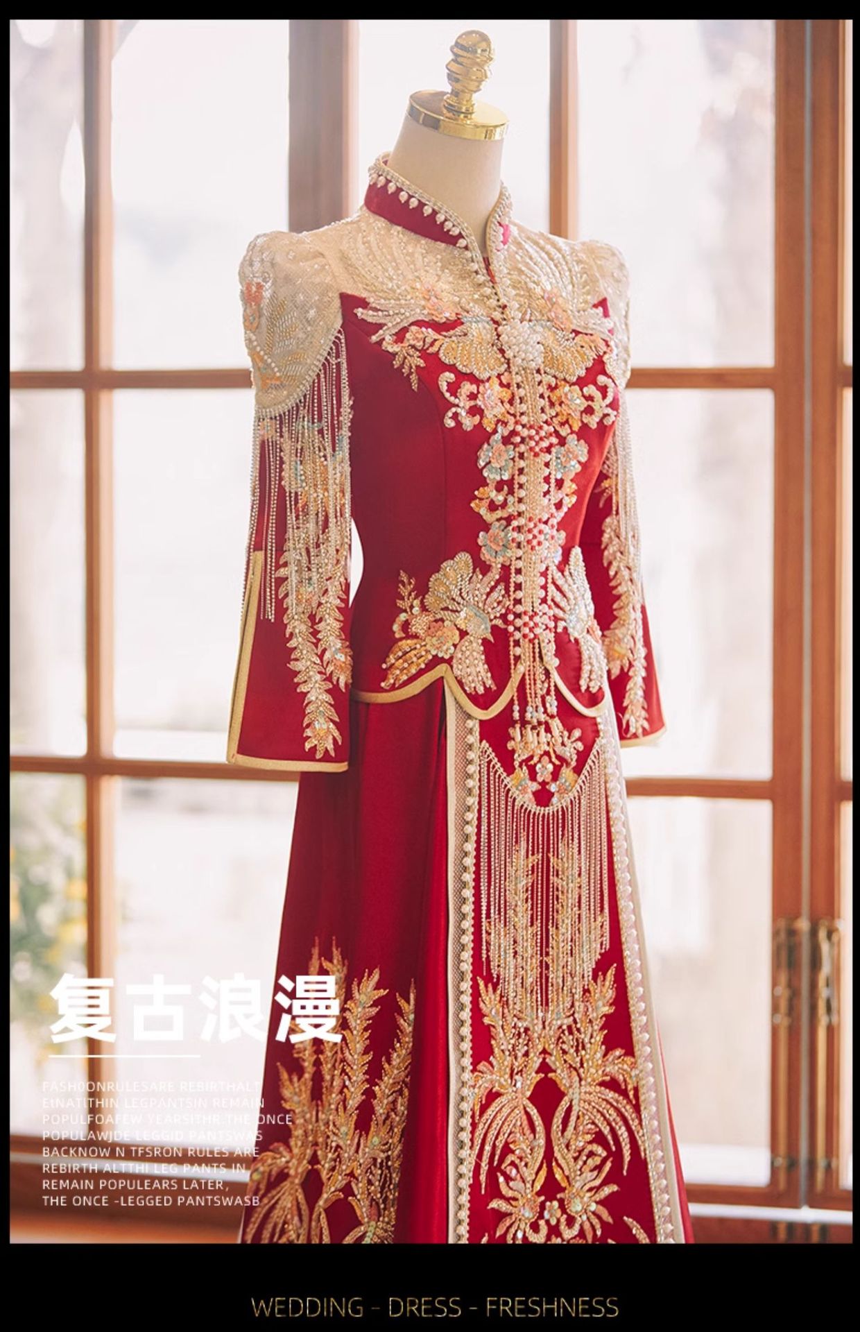 Exoge gaun pernikahan Xiuhe, gaun naga dan Phoenix baru 2024, gaun pernikahan pengantin Tiongkok, mahkota phoenix industri berat kelas atas