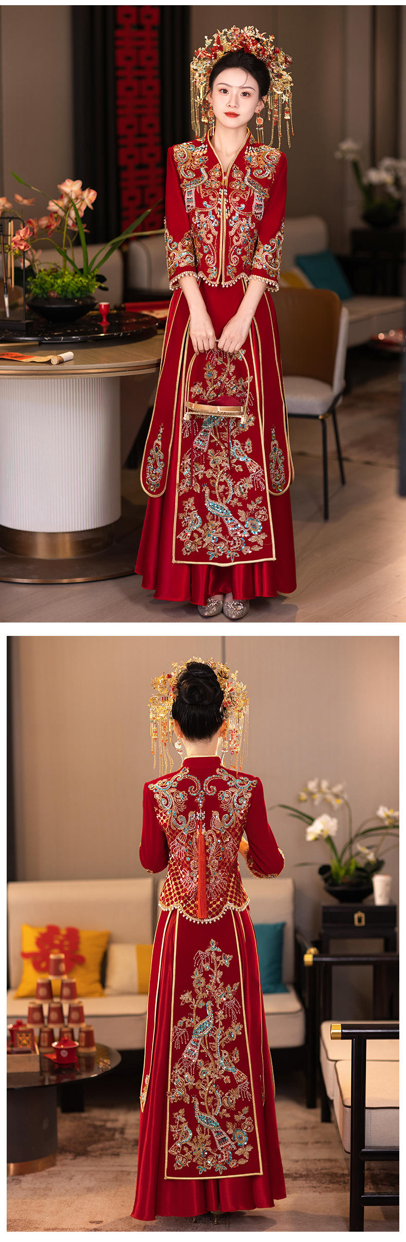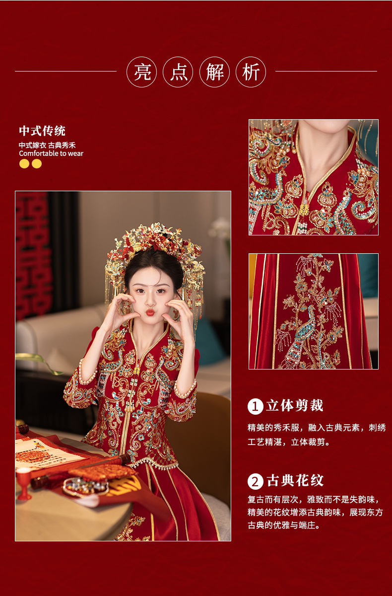 Gaun pengantin Xiuhe musim dingin 2026, gaun pengantin bergaya Cina, gaun pengantin mewah, gaun naga dan phoenix, gaun Xiuhe musim dingin