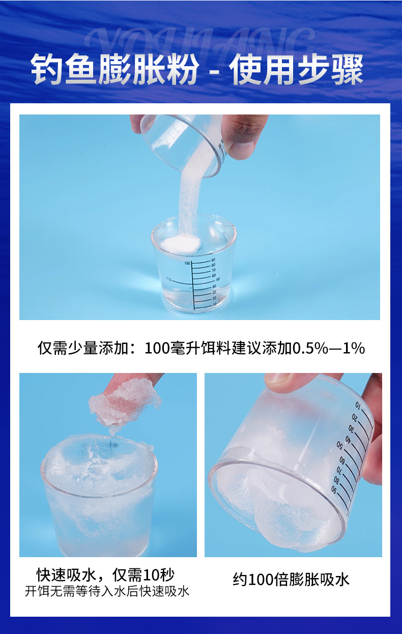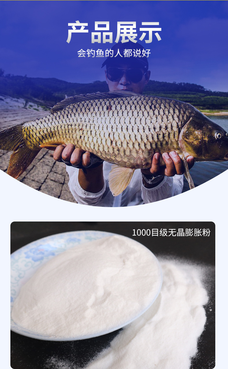 Bubuk penyerap, bubuk ekspansi bebas kristal, bubuk penyerap untuk umpan pancing, aditif jelly umpan, obat kecil untuk mencegah kehilangan umpan.