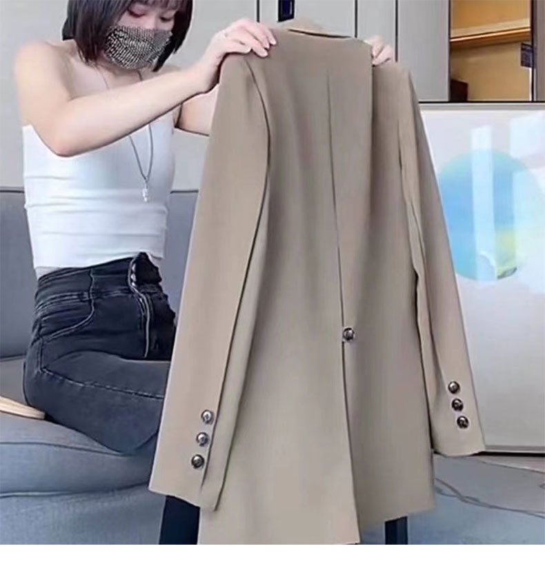 [Stok Tersedia] Pakaian Wanita Ukuran Besar Jaket Jas Warna Khaki Pakaian Musim Semi Wanita Atasan Jas Kecil Gaya Inggris Gaya Goreng Jalanan Model Baru