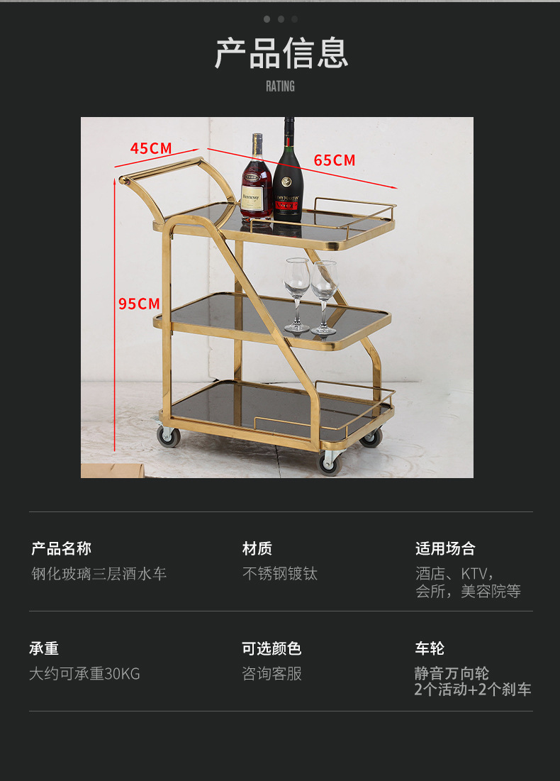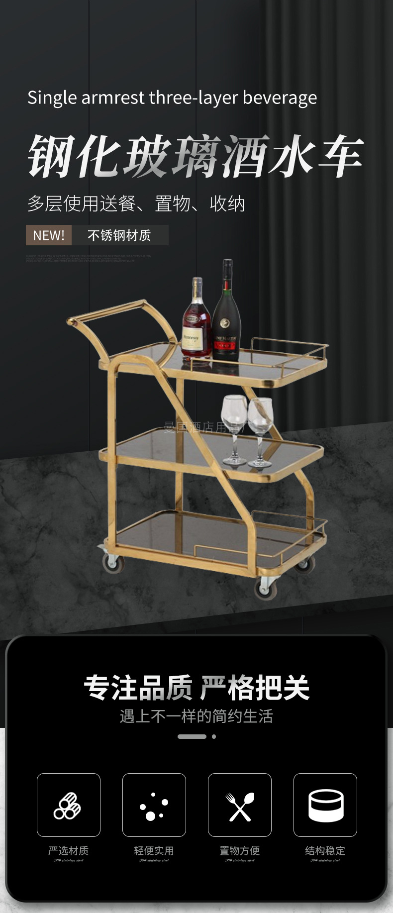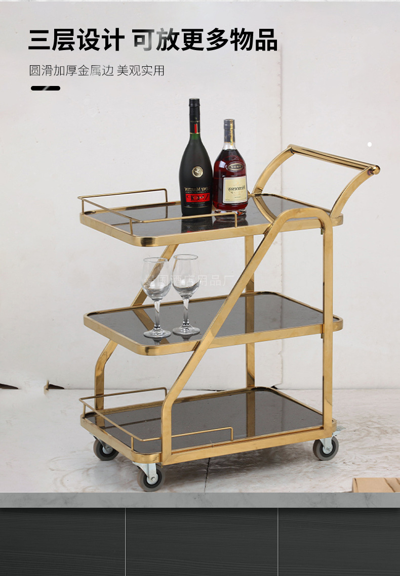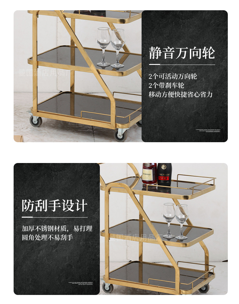 Troli anggur panel kaca tempered pabrik sumber, troli pengiriman baru yang kreatif, troli layanan hotel, troli kue