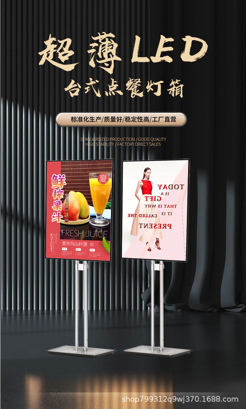 Kotak lampu LED poster tiang ganda tipe lantai papan reklame bercahaya pintu berdiri vertikal piring pajangan bergerak piring bercahaya