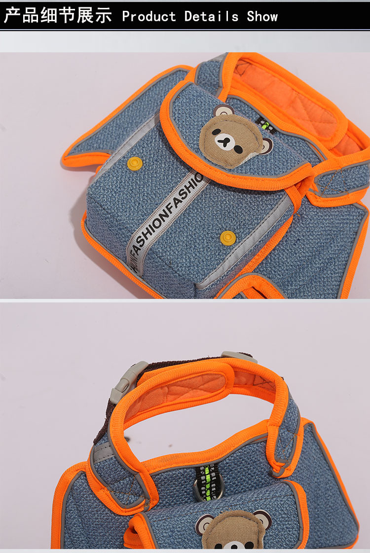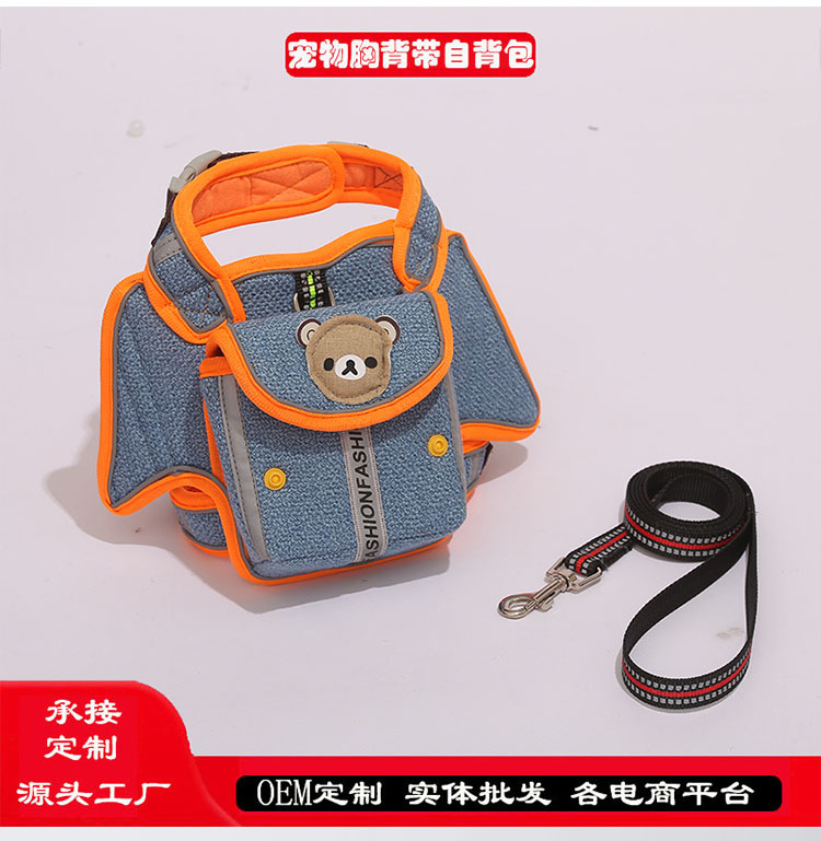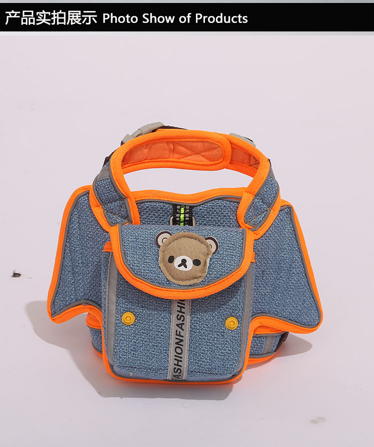 Harness hewan peliharaan dengan desain reflektif anti-melarikan diri, harness anjing dengan tali pengikat yang dapat dibawa sendiri, strip reflektif untuk jalan malam yang aman.