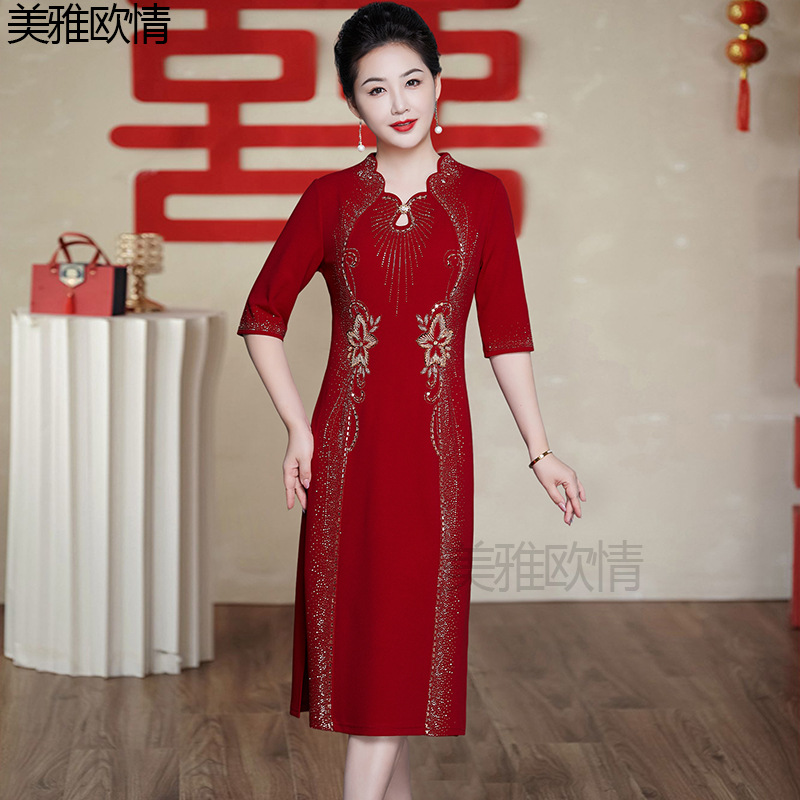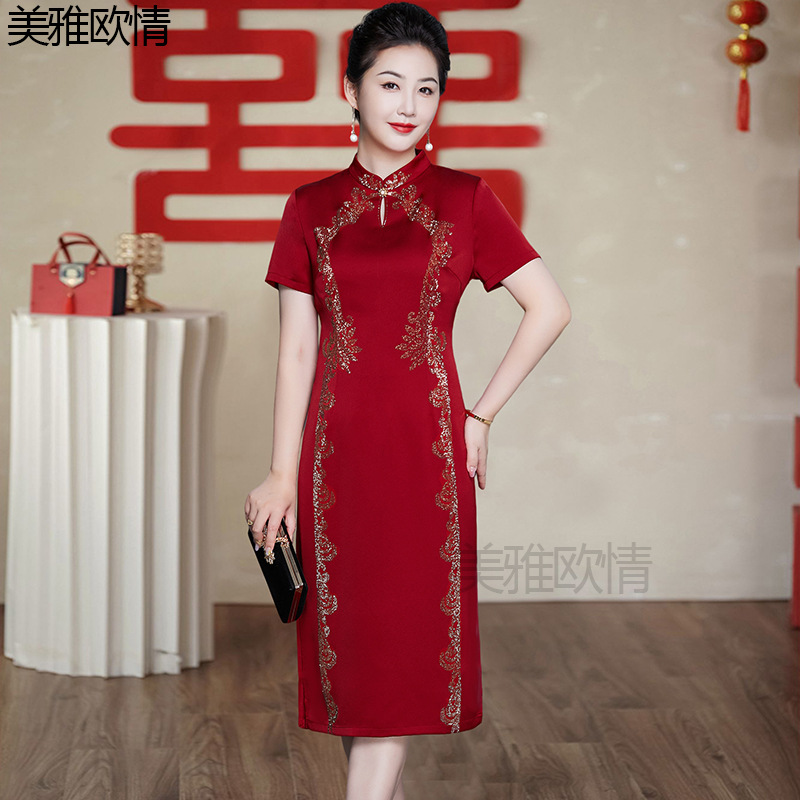 Gaun pesta pernikahan gaya musim panas terbaru 2026 untuk ibu mertua, qipao elegan dan modis untuk pernikahan ibu, gaun untuk bersulang.