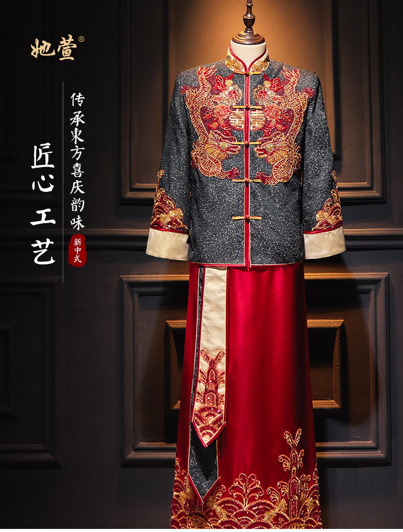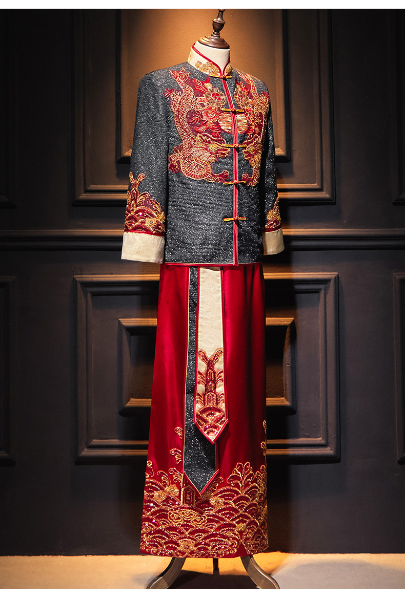 Xiuhe Pakaian Pengantin Pria Gaya Baru 2025 Pakaian Pernikahan Tradisional Tiongkok untuk Pria Kimono Xiuhe.