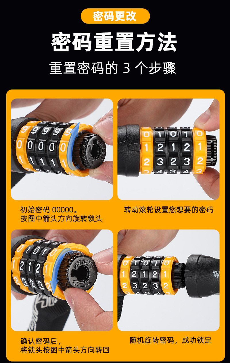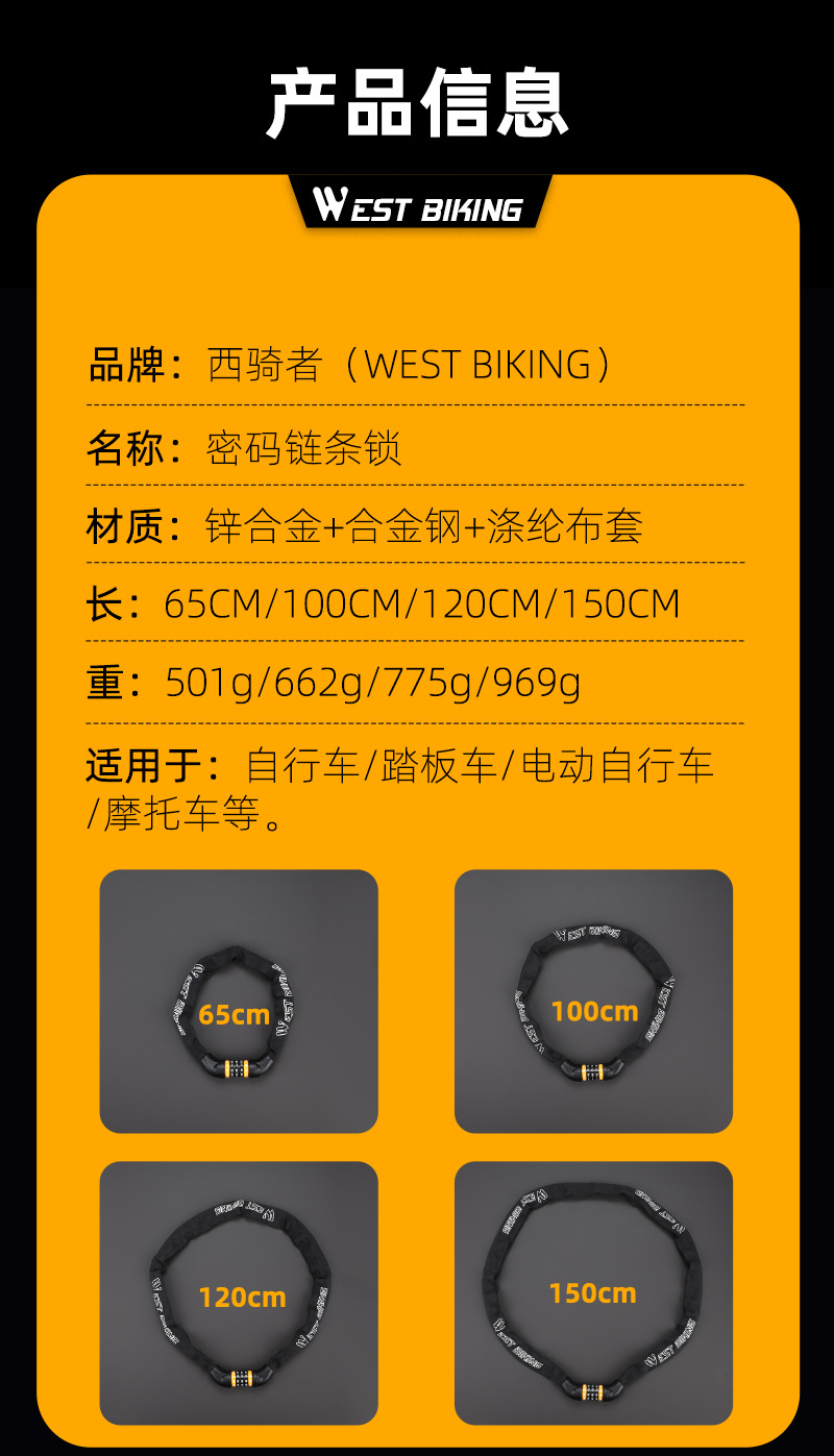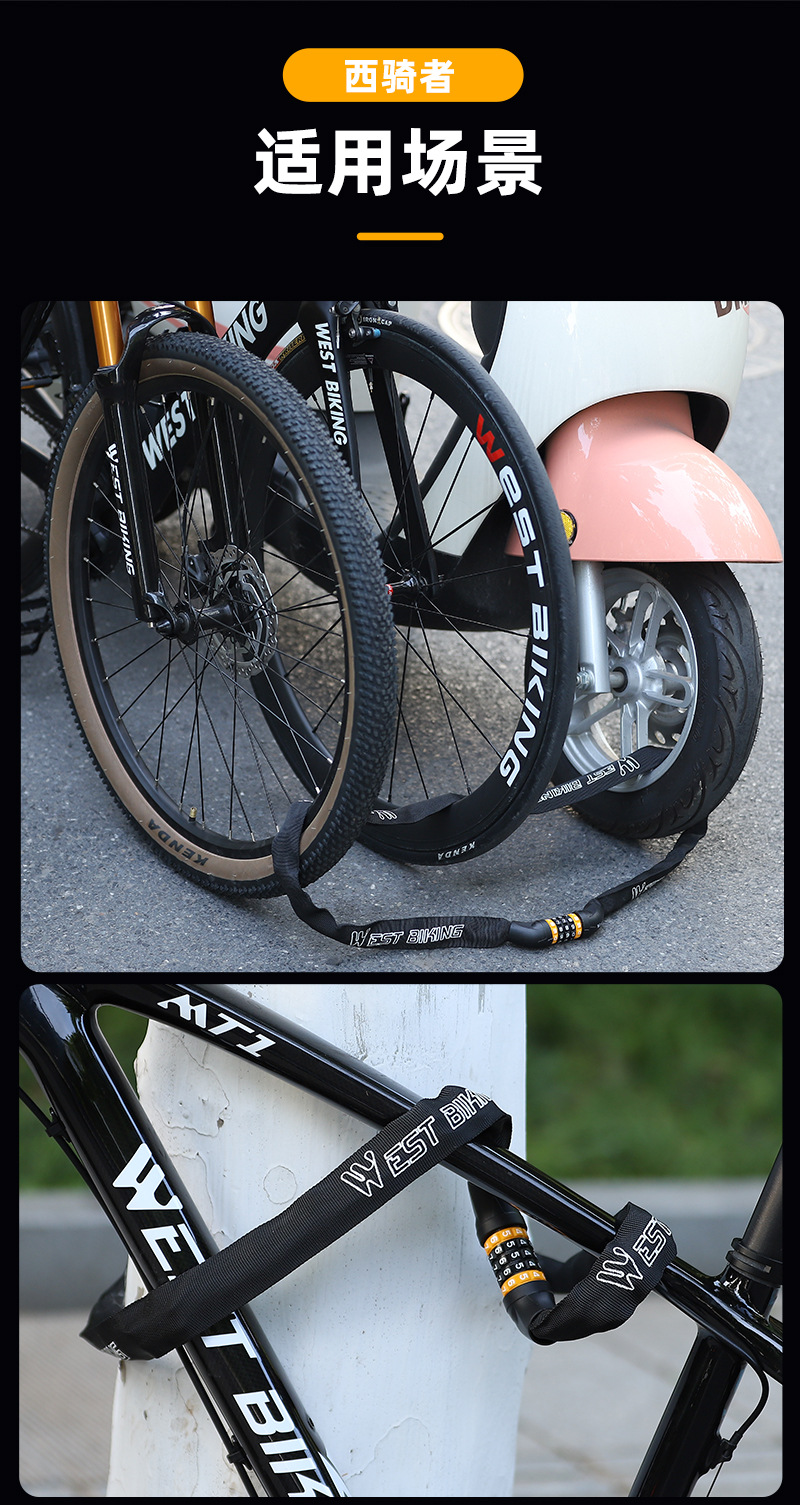 West rider kunci rantai sepeda 5 digit kata sandi, jalan gunung portabel kunci sandi kunci sepeda motor baterai mobil