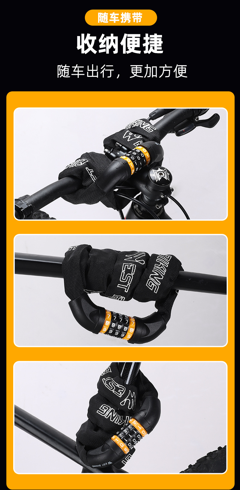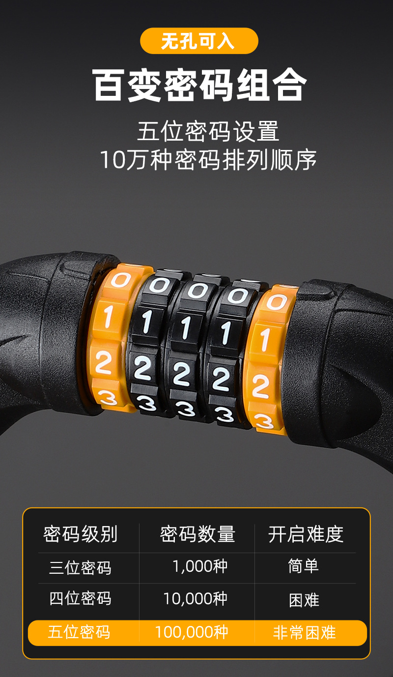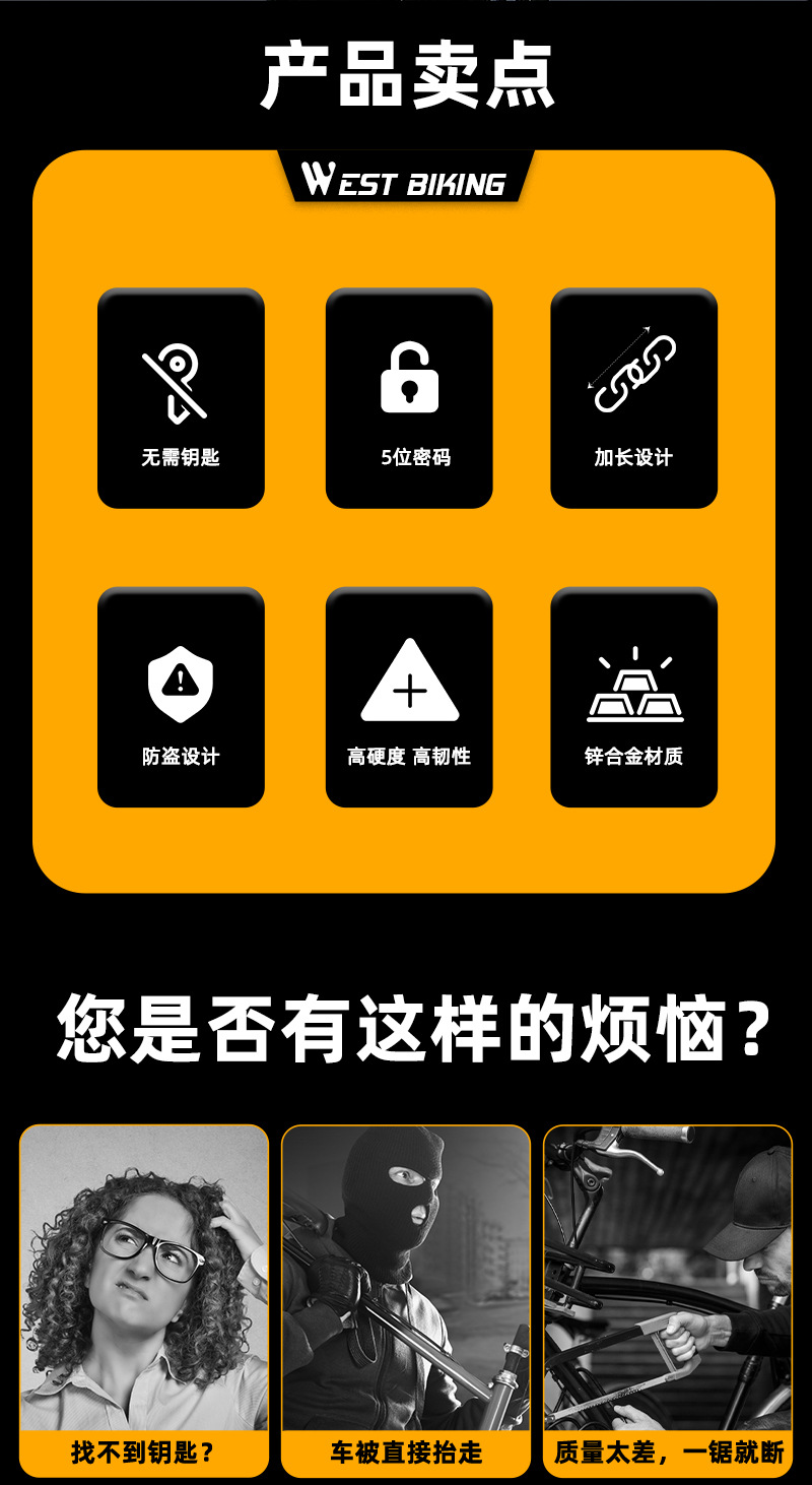 West rider kunci rantai sepeda 5 digit kata sandi, jalan gunung portabel kunci sandi kunci sepeda motor baterai mobil
