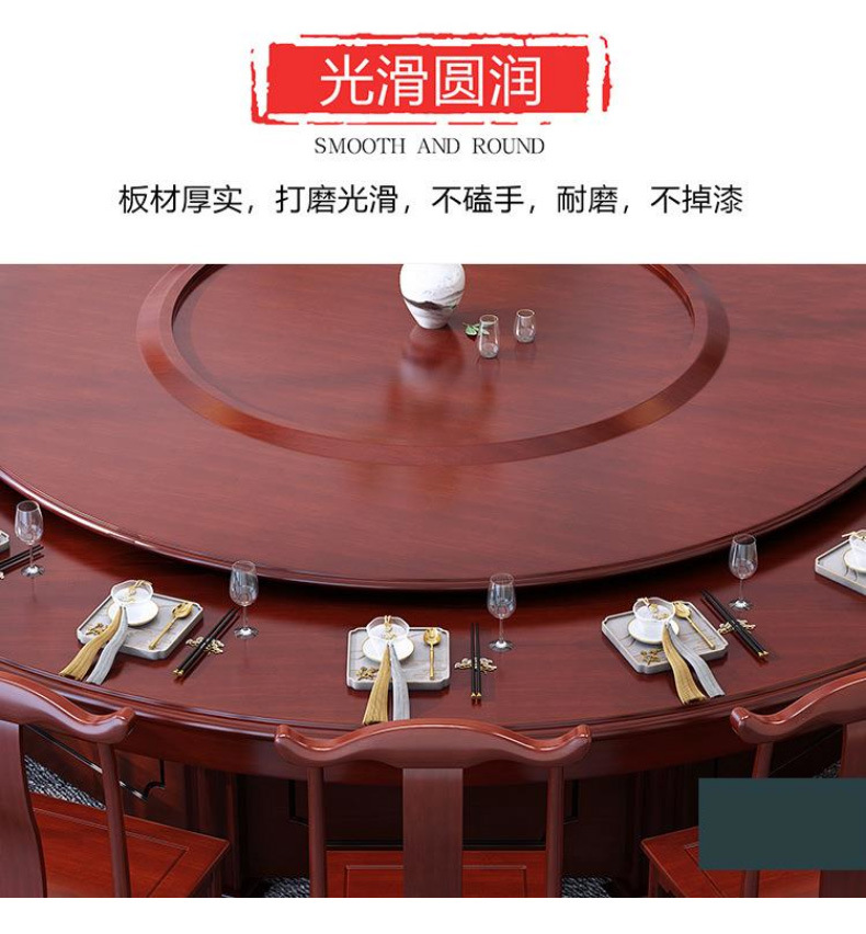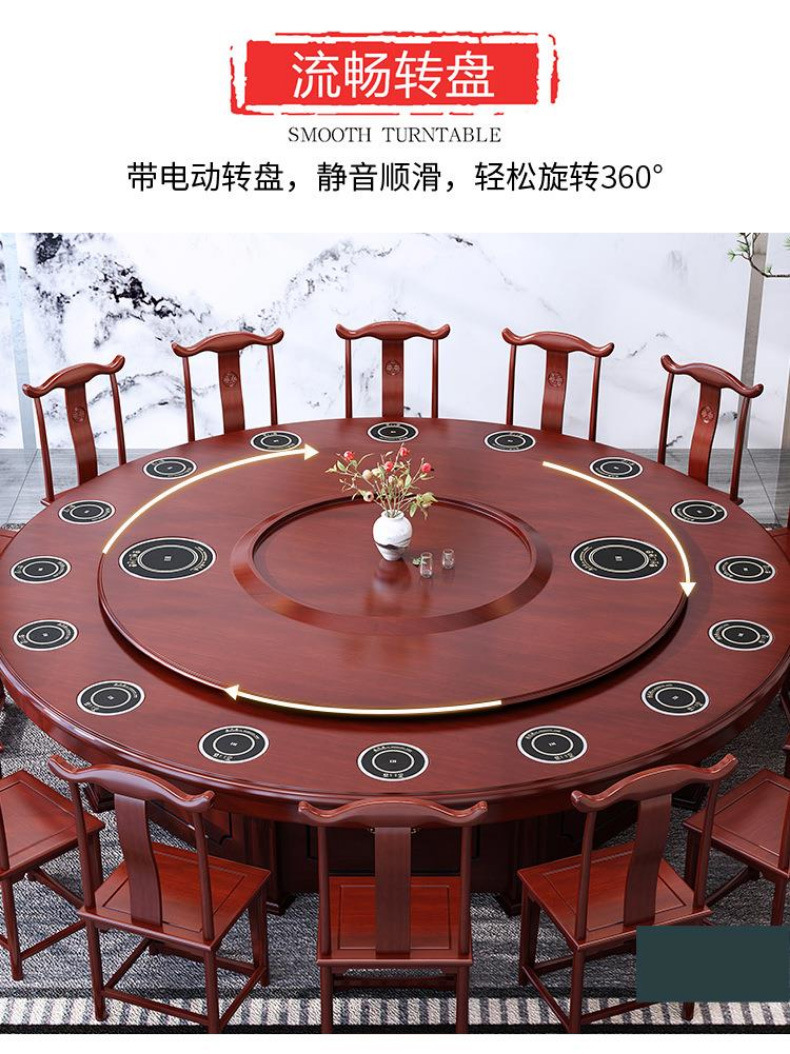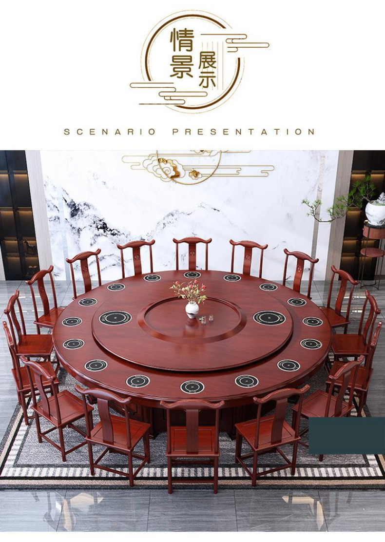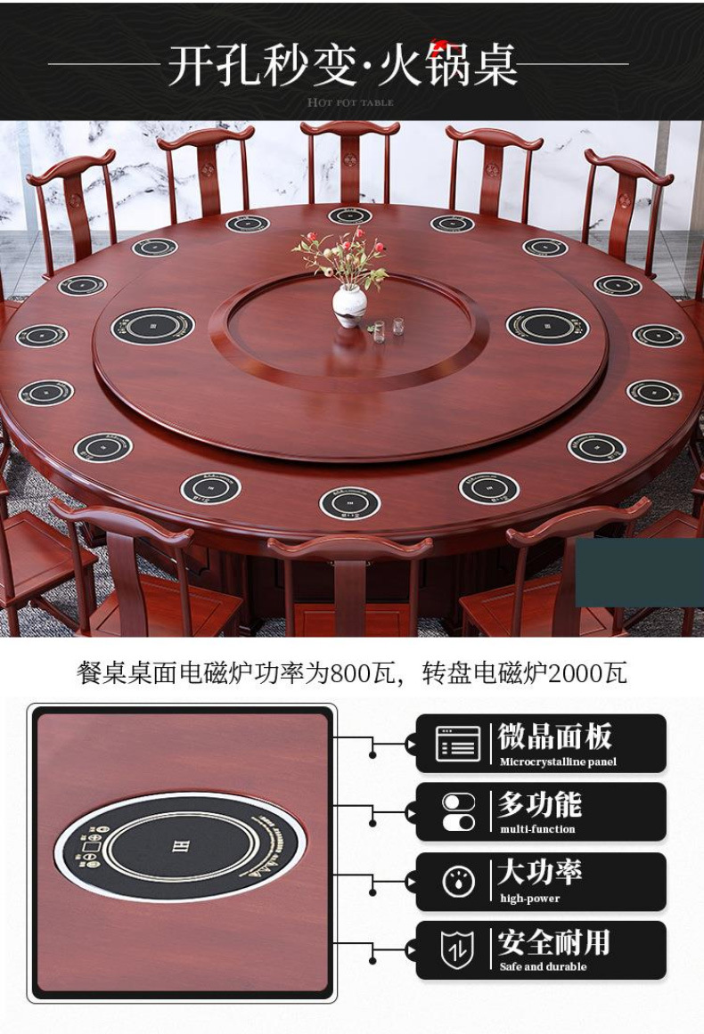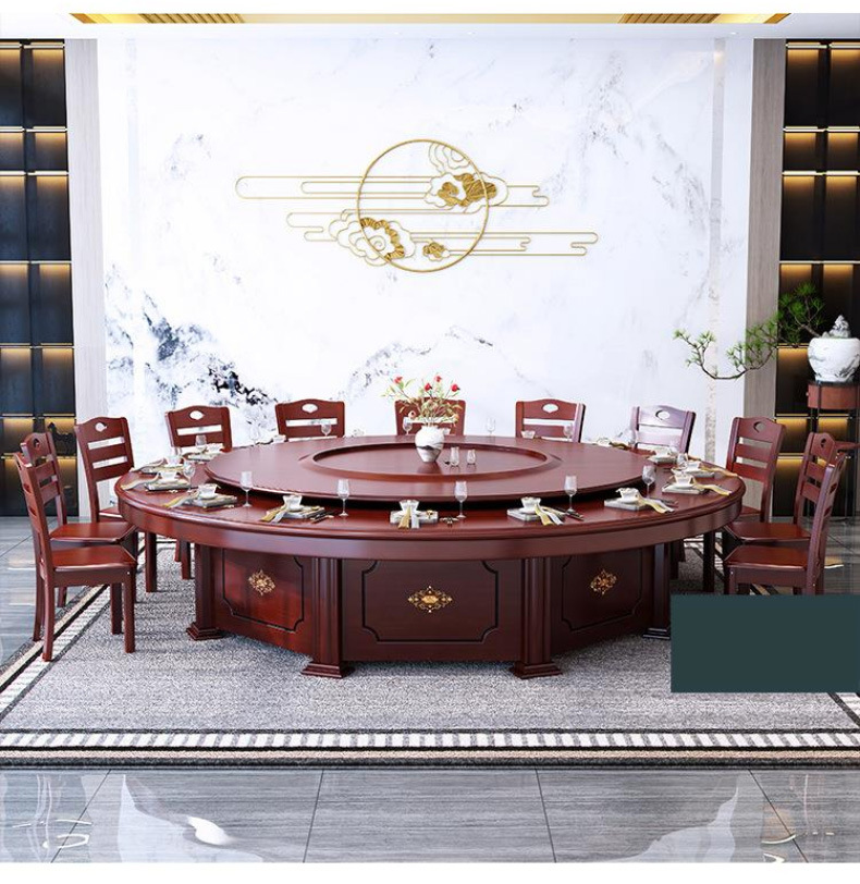 Meja Bundar besar elektrik Tiongkok, kotak makan multi orang, Meja bulat besar, kayu solid, meja putar 2m3 m