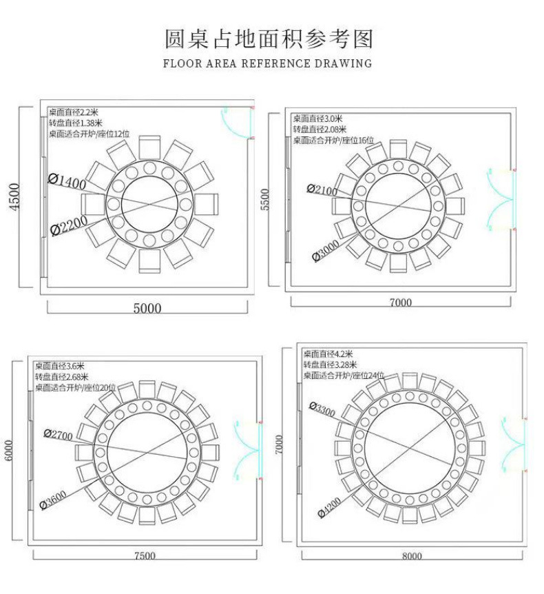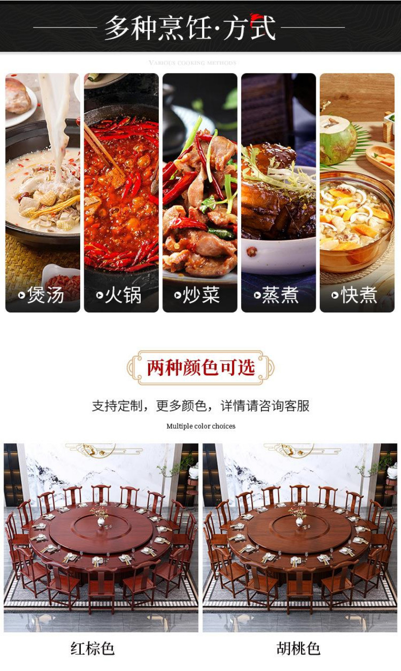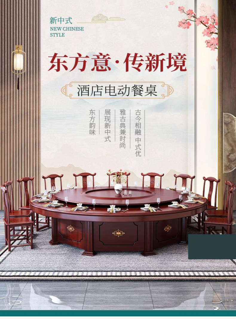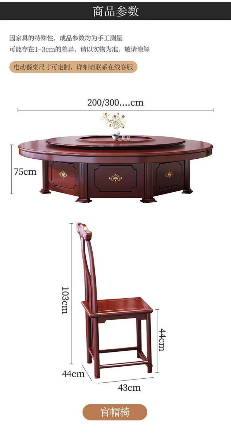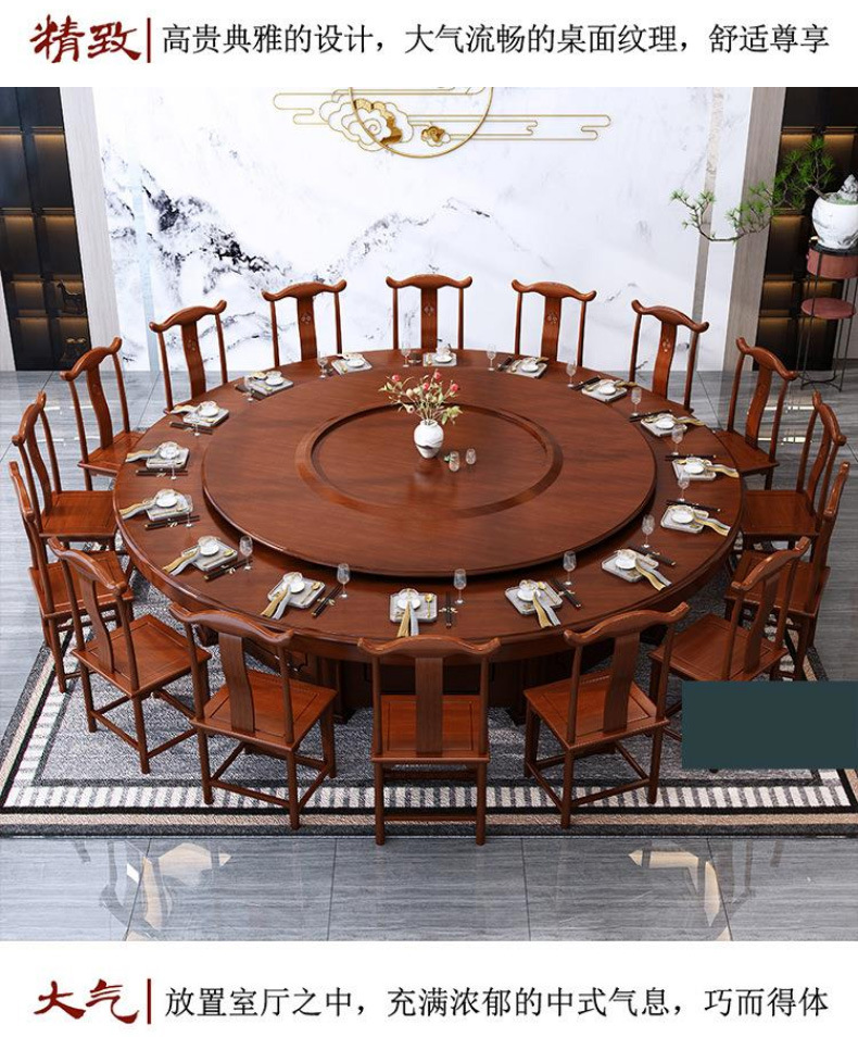 Meja Bundar besar elektrik Tiongkok, kotak makan multi orang, Meja bulat besar, kayu solid, meja putar 2m3 m