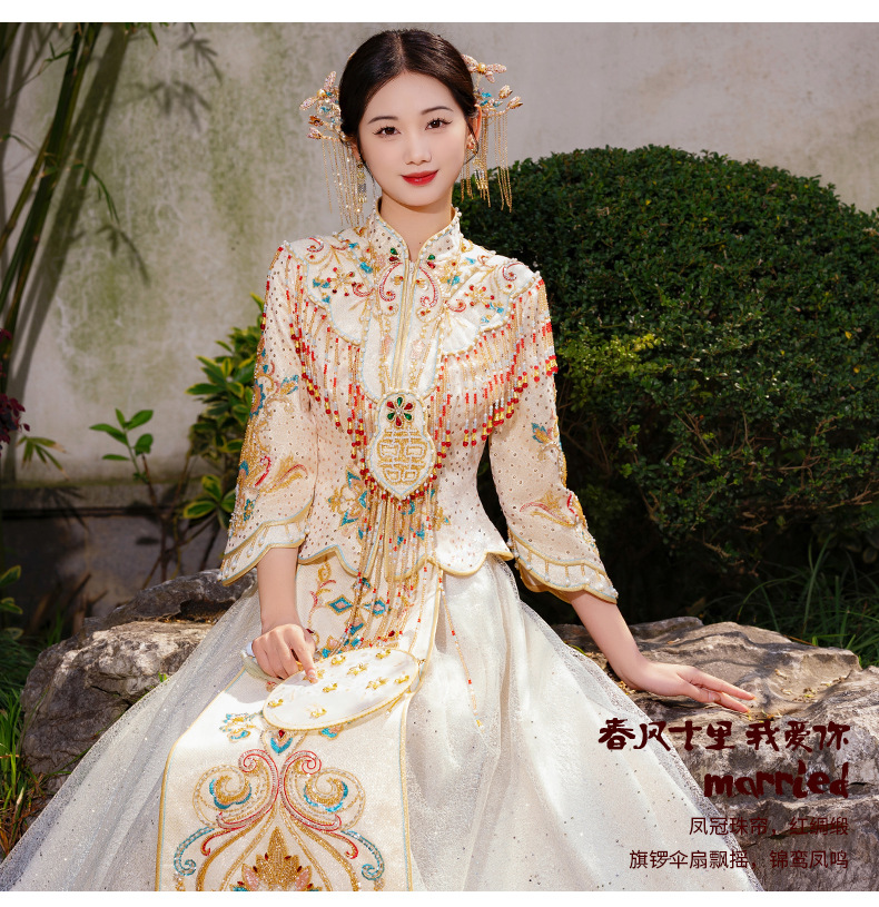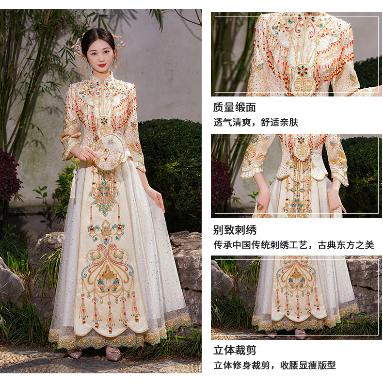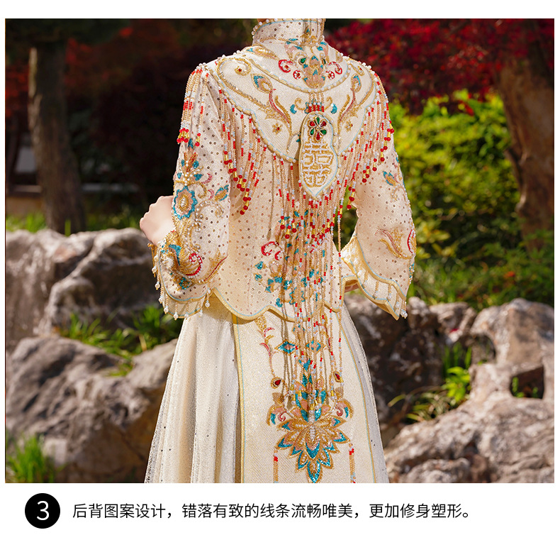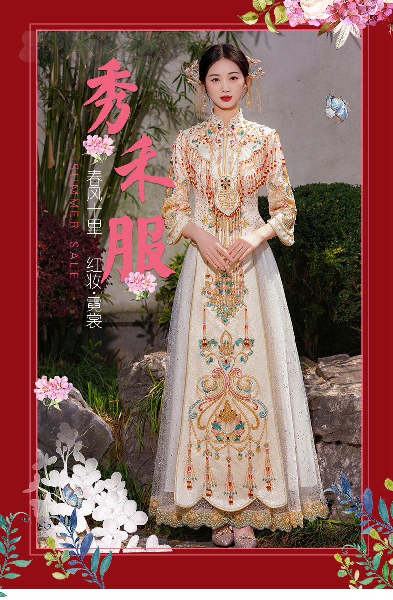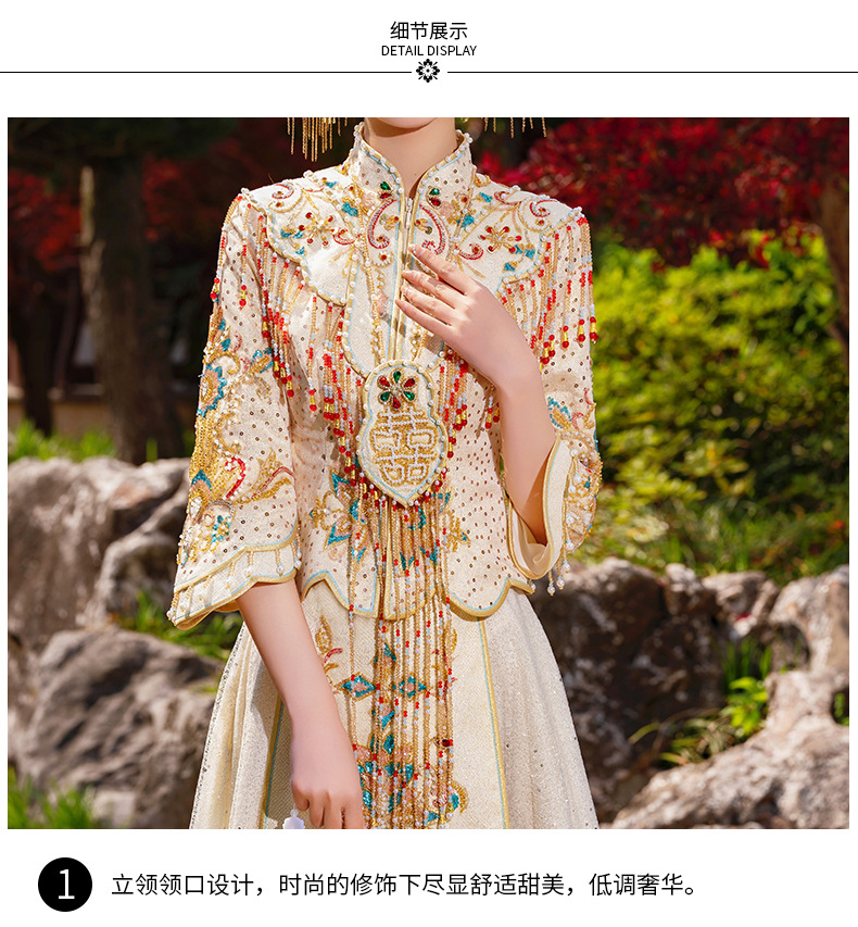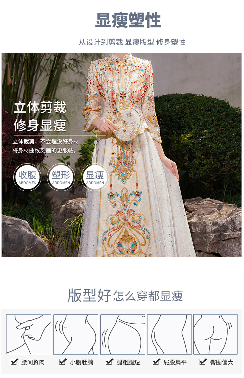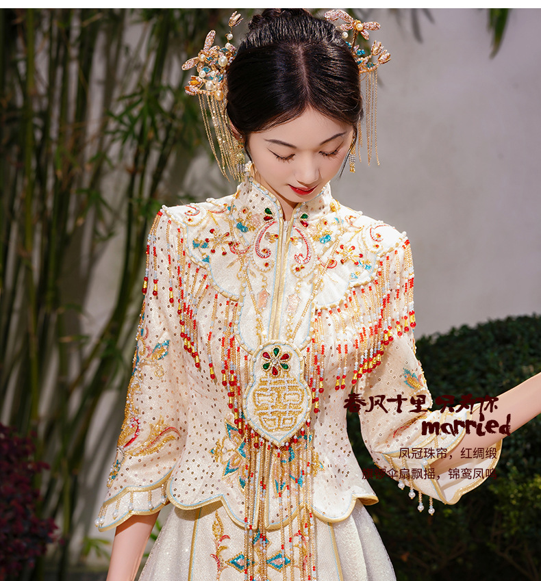 Gaun pengantin Xiuhe, gaun bersulang warna kontras sampanye terbang musim panas baru