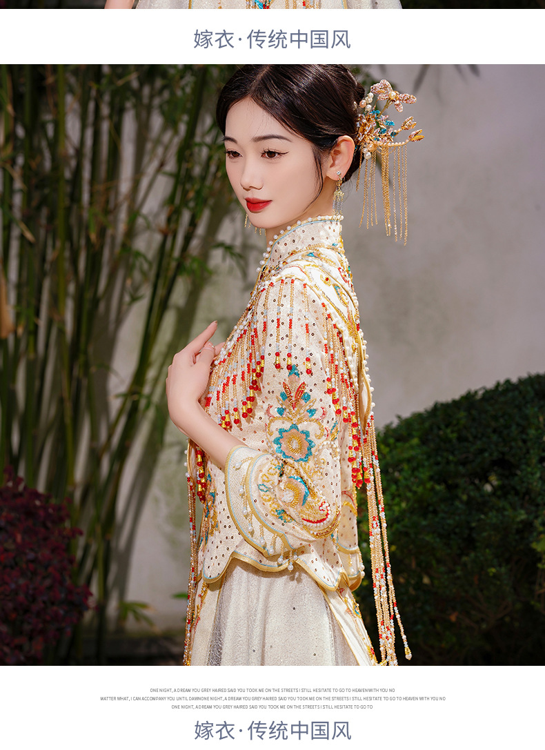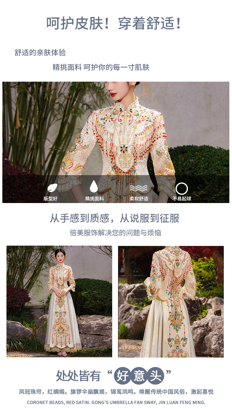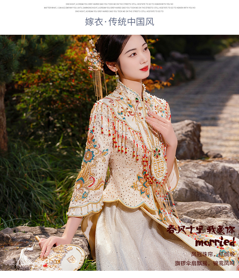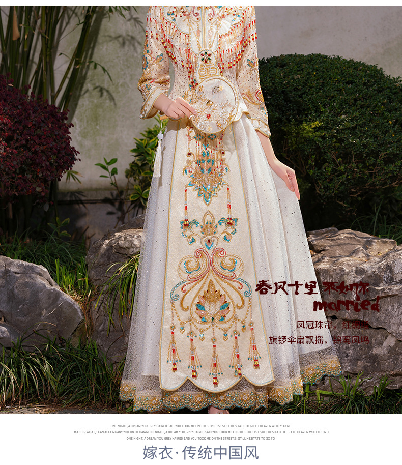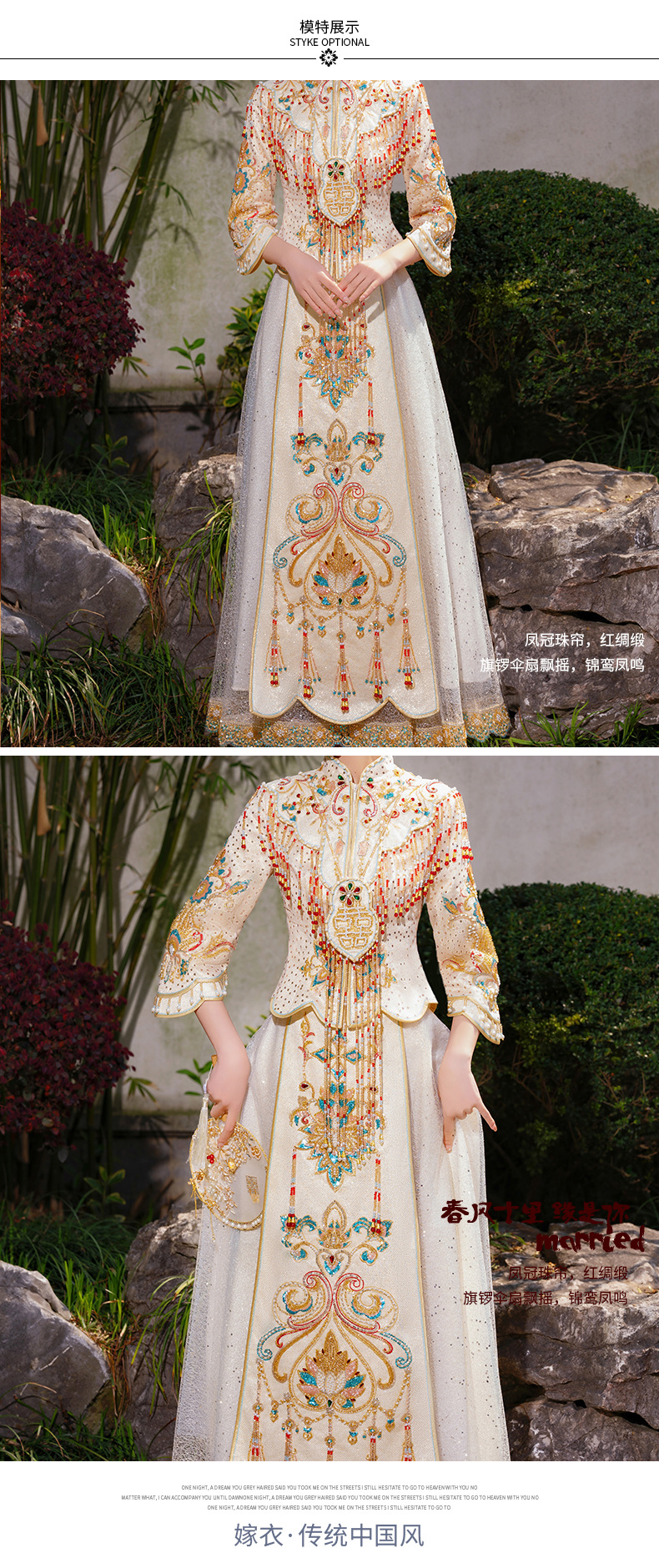 Gaun pengantin Xiuhe, gaun bersulang warna kontras sampanye terbang musim panas baru