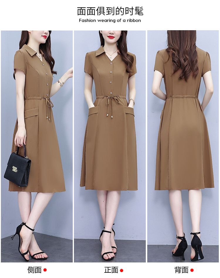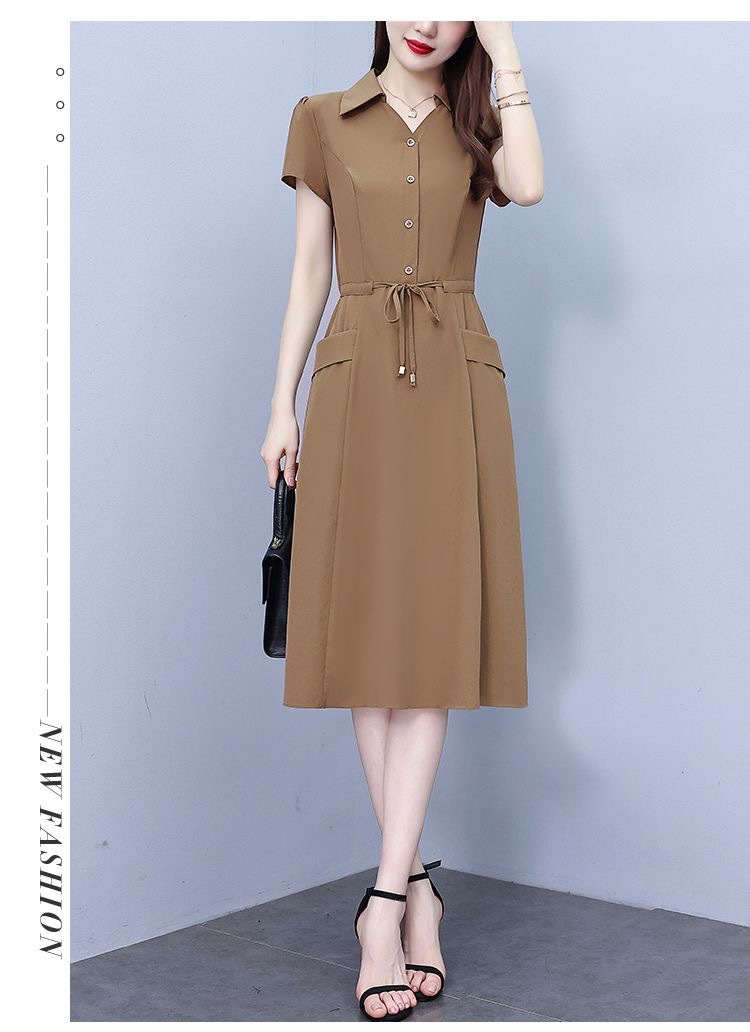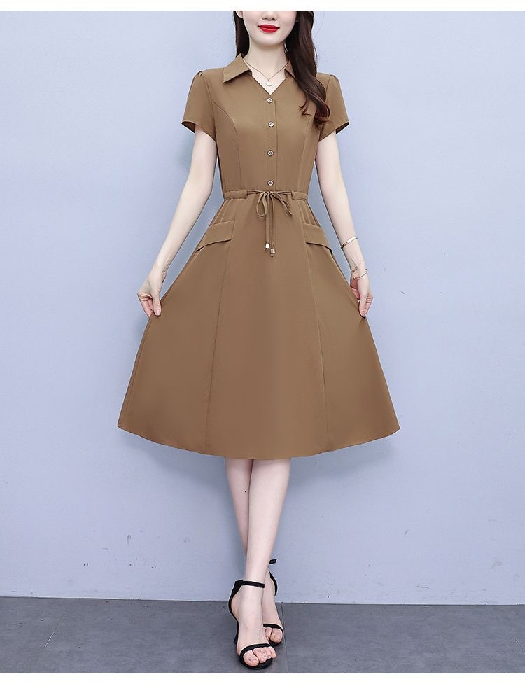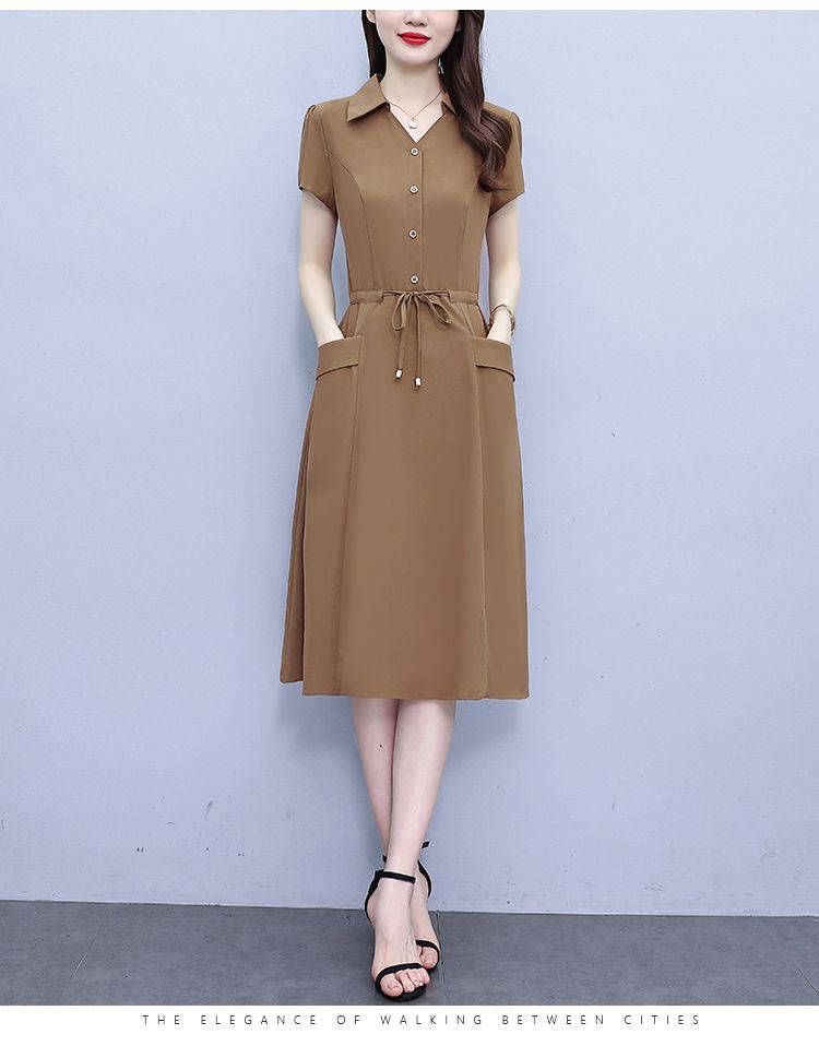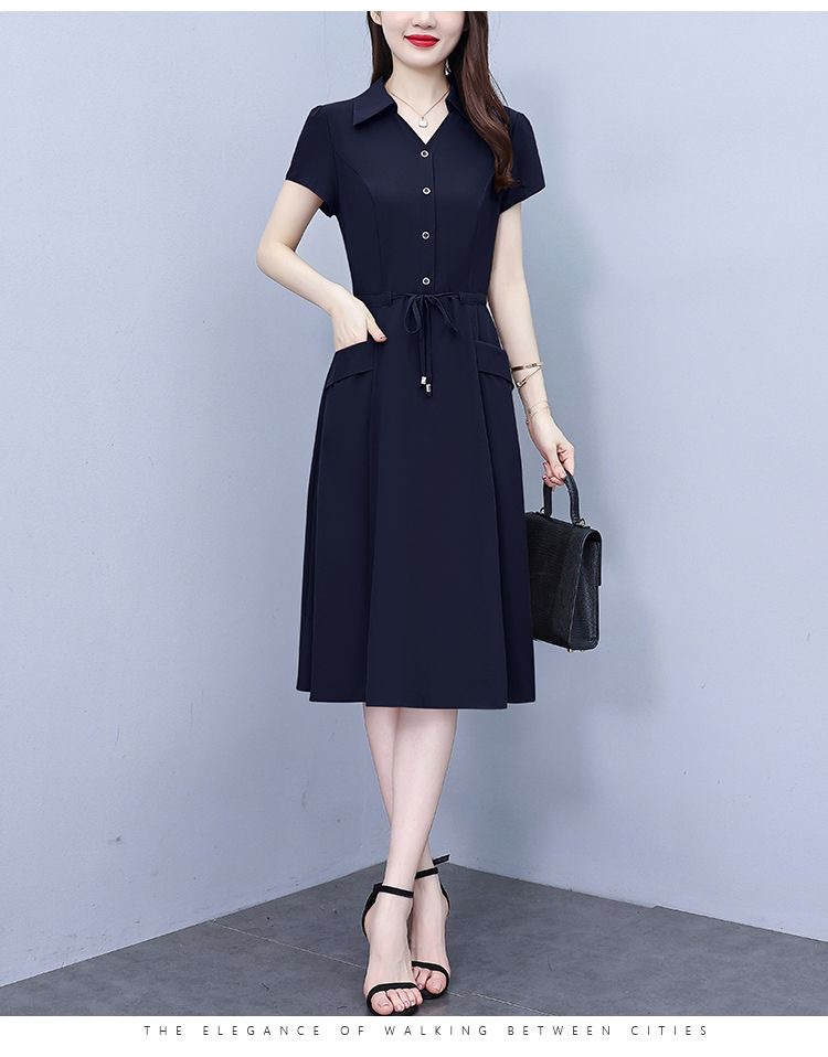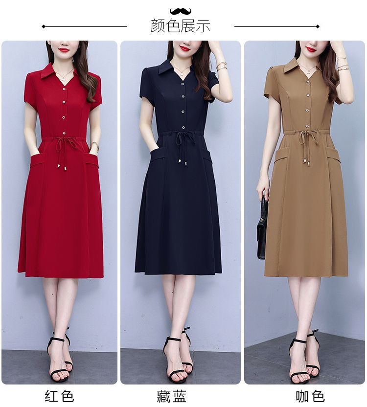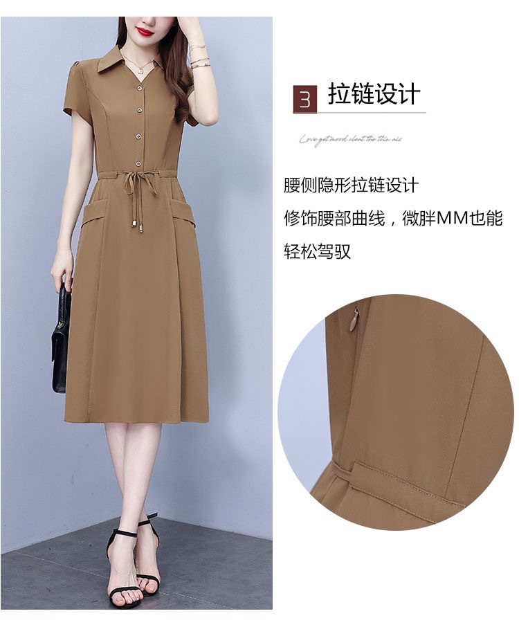 Gaun pinggang ketat untuk wanita, gaun pakaian ibu modis lengan pendek musim panas ukuran Plus, rok a-line panjang pelangsing perut, penutup pinggang ketat gaya Barat modis