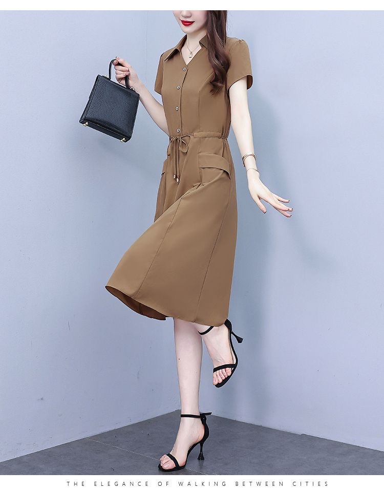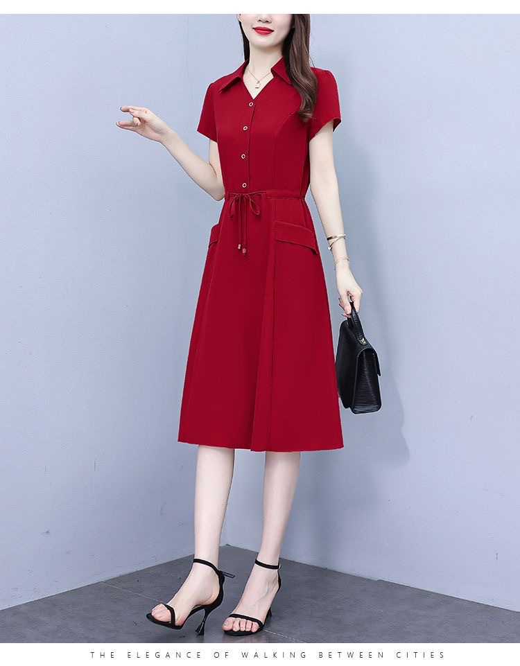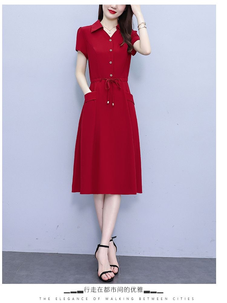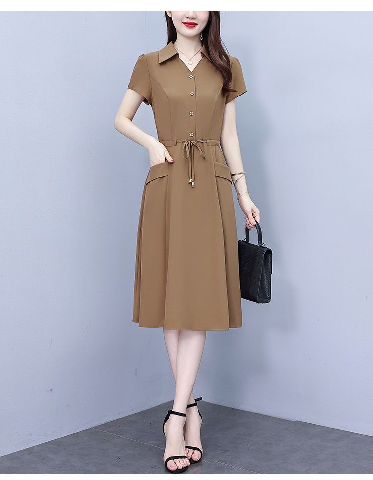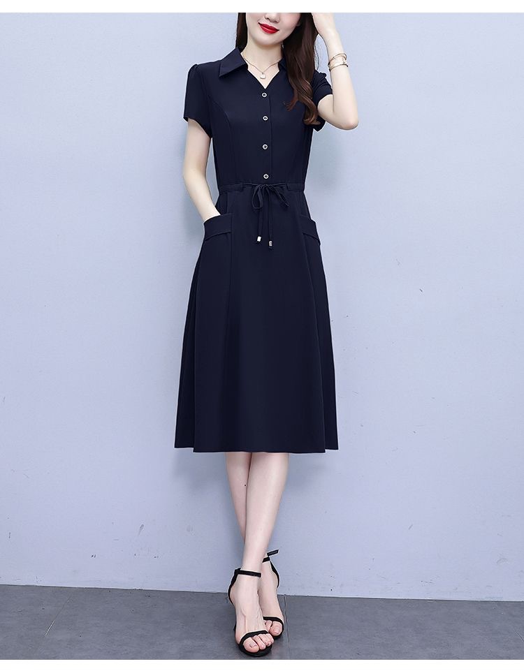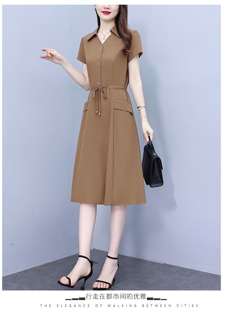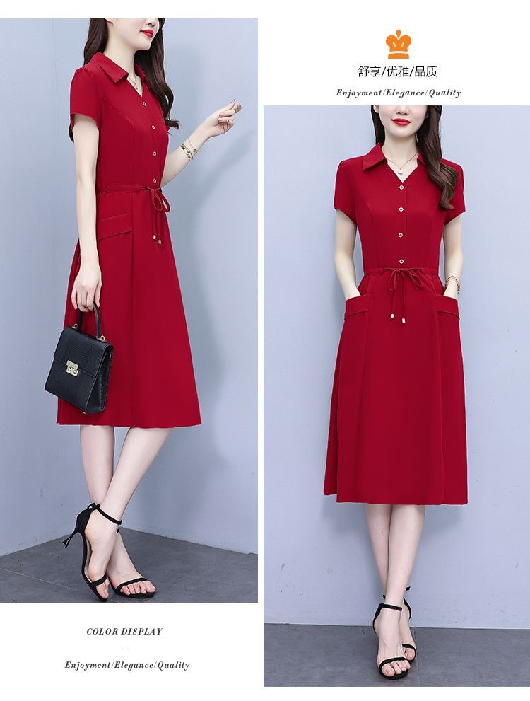 Gaun pinggang ketat untuk wanita, gaun pakaian ibu modis lengan pendek musim panas ukuran Plus, rok a-line panjang pelangsing perut, penutup pinggang ketat gaya Barat modis