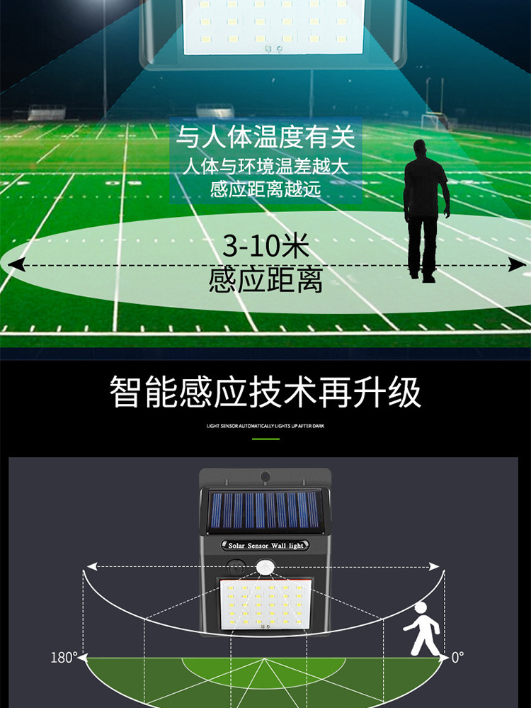 Lampu Dinding Tenaga Surya Satu Sisi Lampu Luar Ruangan Induksi Tubuh Manusia Lampu Taman Luar Ruangan Lampu Malam Kecil Otomatis LED Tahan Air