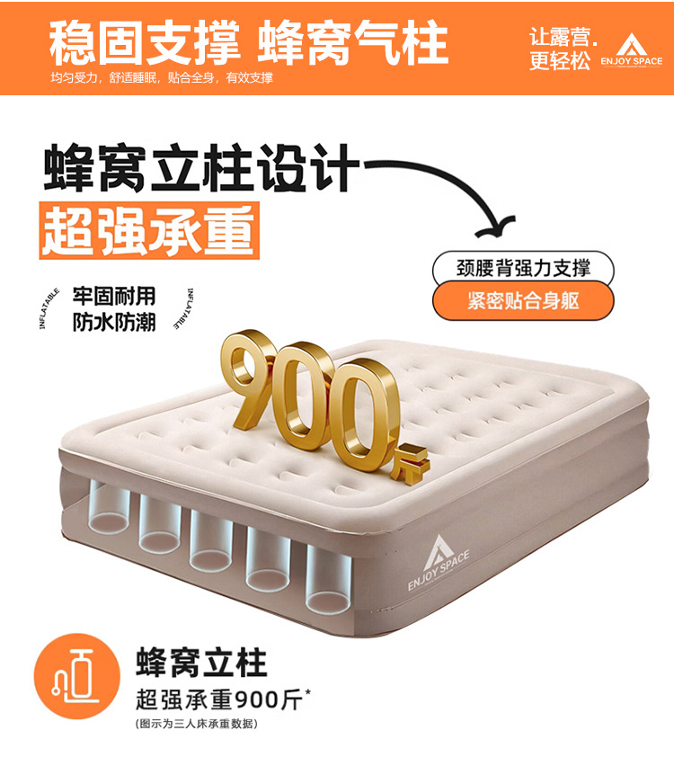 Joyspace kasur tiup luar ruangan berkemah, tempat tidur lipat bantal tiup otomatis dipertinggi tunggal dobel bantal udara