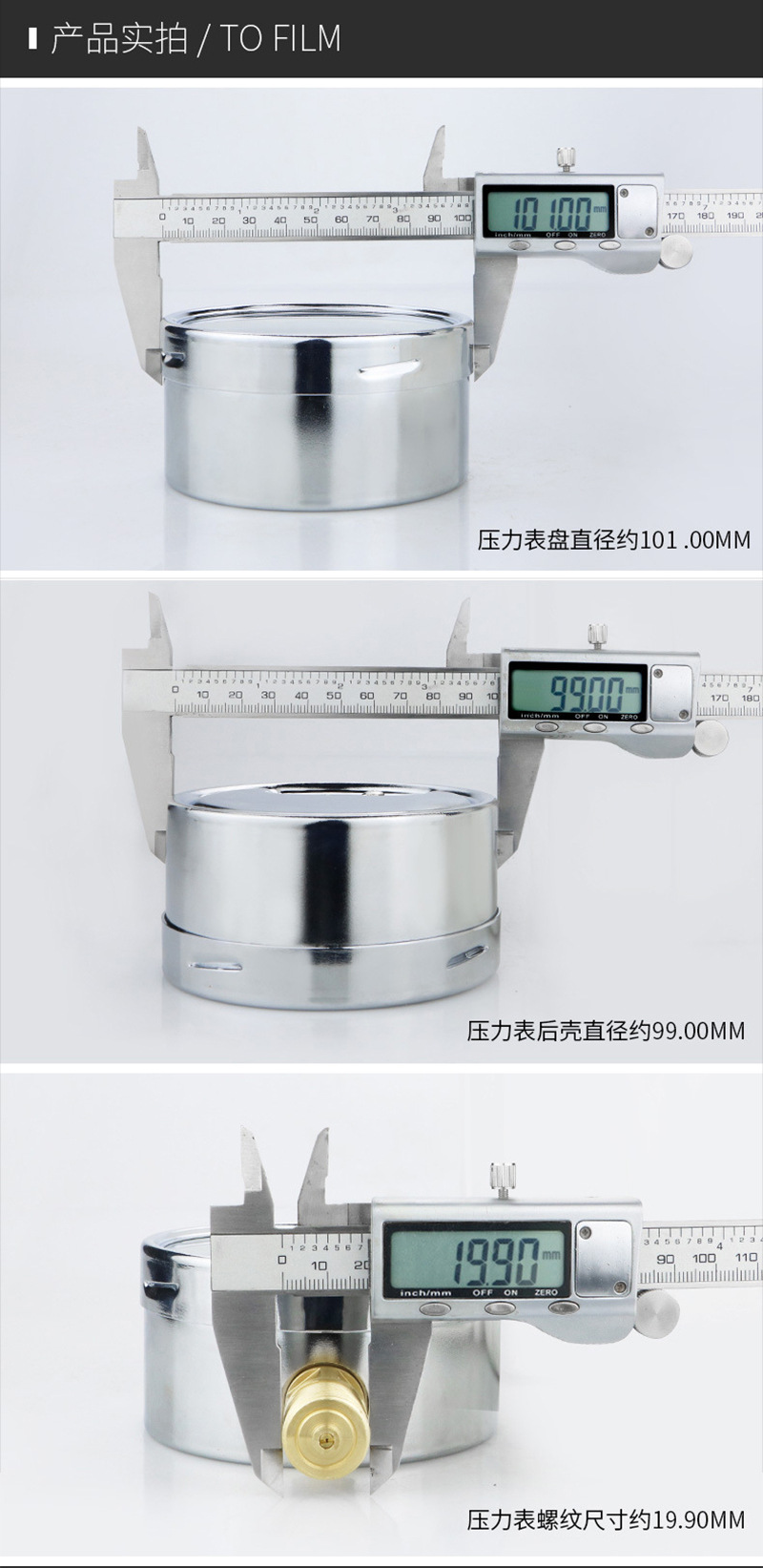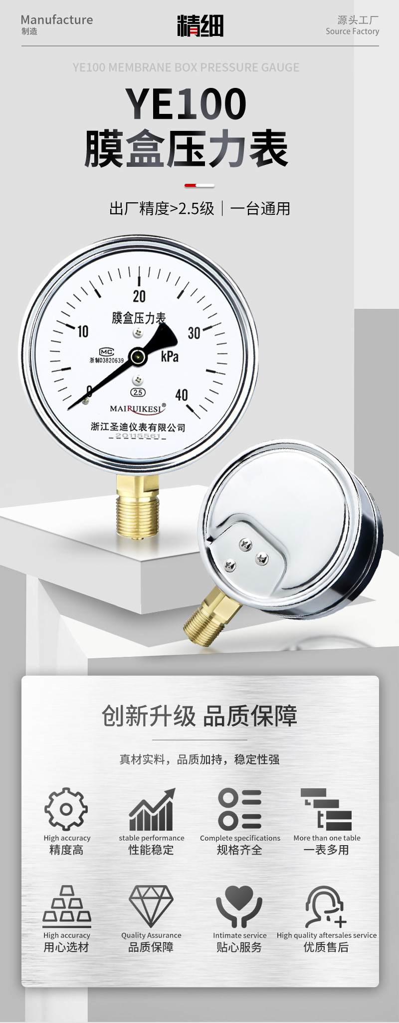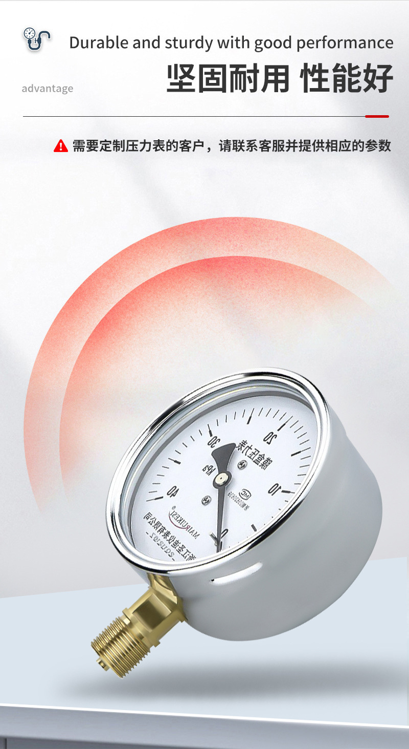 Pengukur tekanan burner YE100 dengan penutup resin transparan, akurasi 2.5, pengukur tekanan diafragma M20*1.5