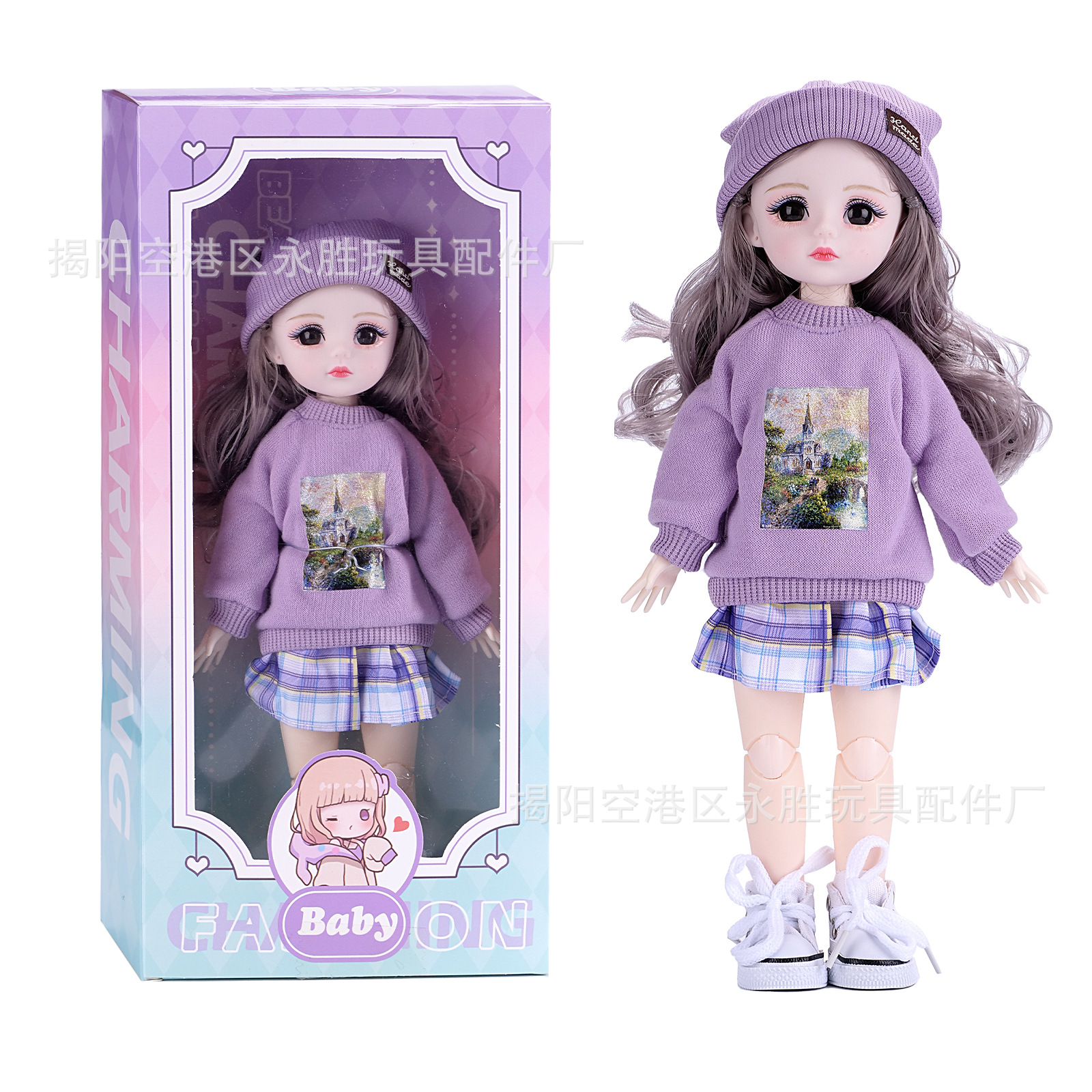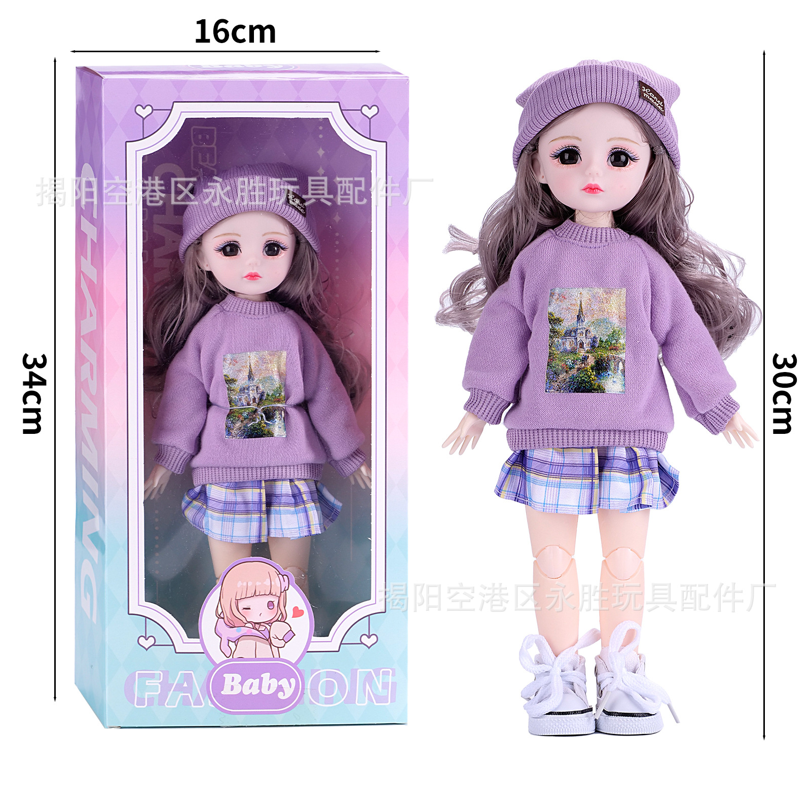 【商品包装】:OPP袋娃娃约34*12*4 衣服约尺寸13*12*3CM左右 娃娃盒子装尺寸约34x16x6CM (盒子装一箱30PCS 尺寸62.5 X50 x 36CM重量9.9KG)
