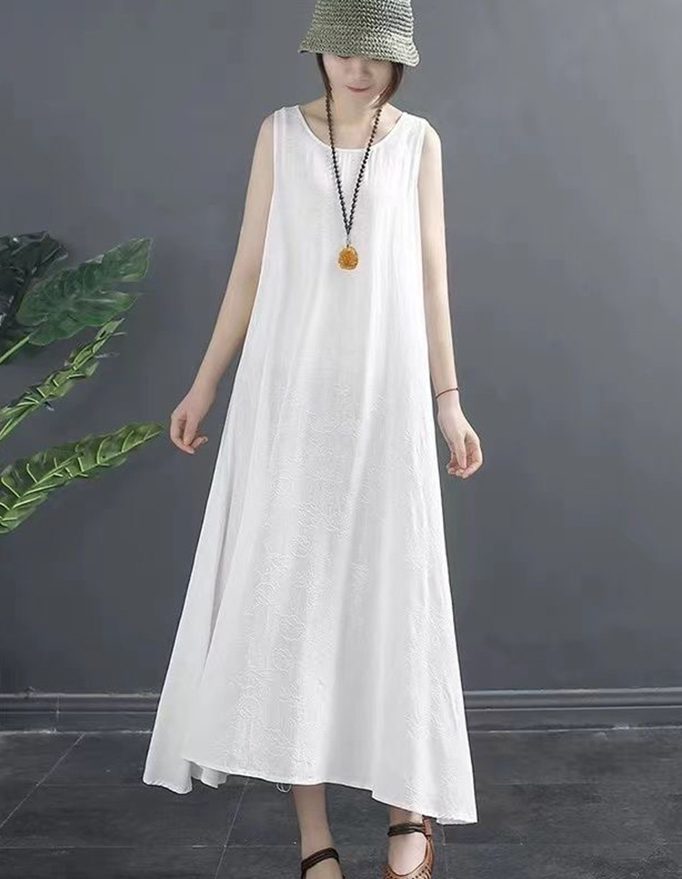 Baju katun murni artistik musim panas wanita, rompi tanpa lengan ukuran besar modis cocok untuk semua