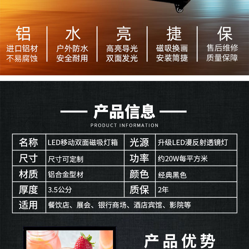 Kotak Lampu Iklan dengan Baterai LED Kotak Lampu Magnetik Satu dan Dua Sisi Kotak Lampu Dinding Berdiri Berdiri untuk Ponsel Luar Ruangan