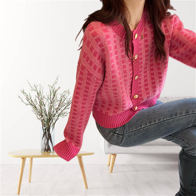 Sweter rajutan gaya baru musim semi dan musim gugur awal 2026 untuk wanita, kotak-kotak merah muda, longgar, melangsingkan, lucu, jaket kardigan modis untuk wanita.