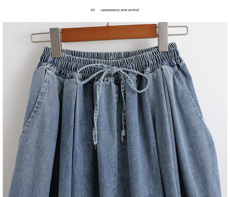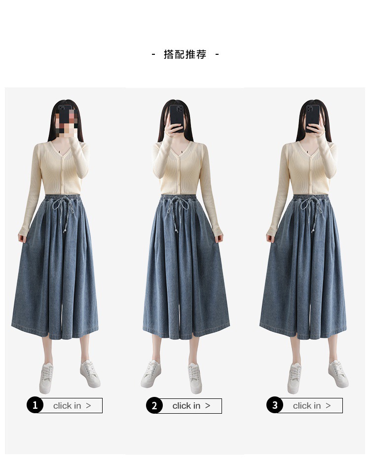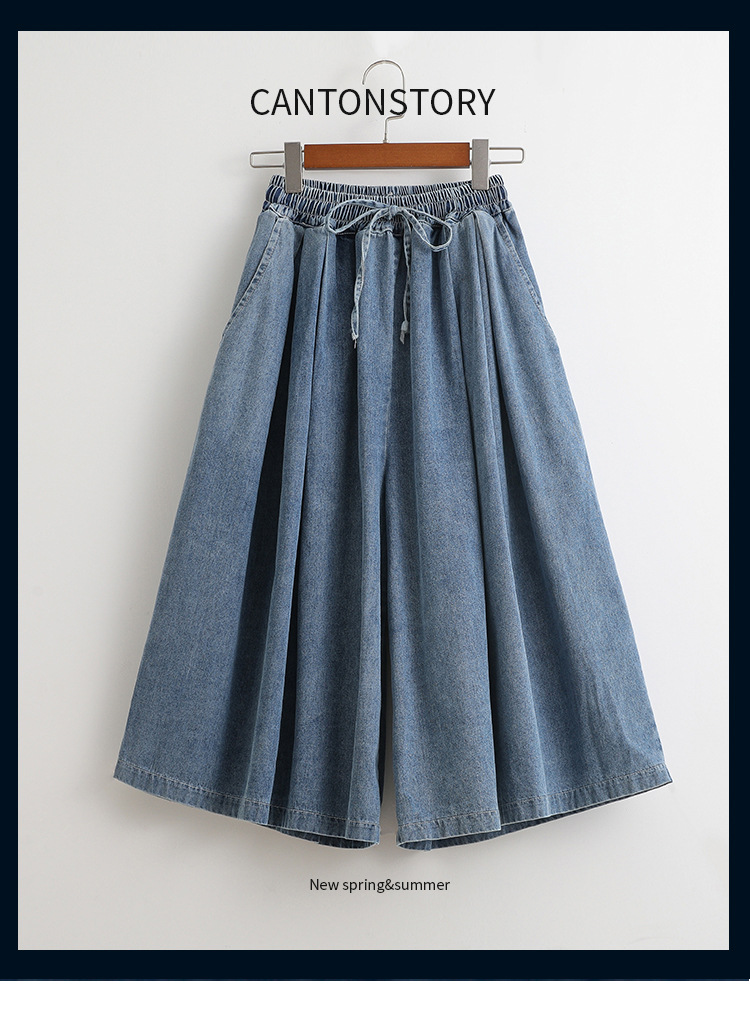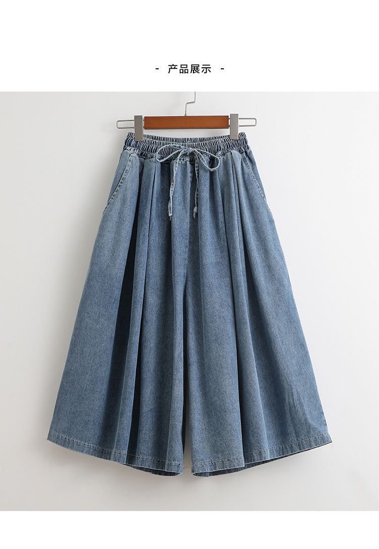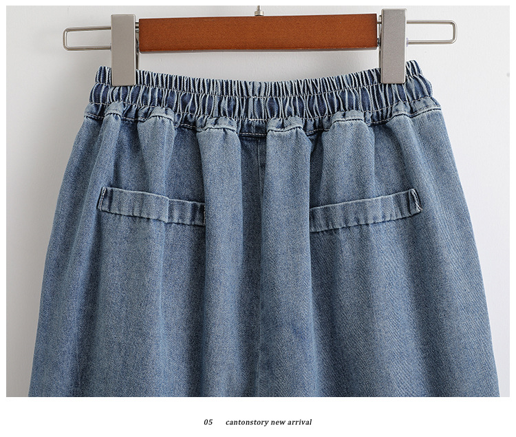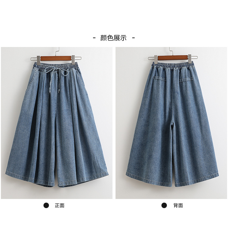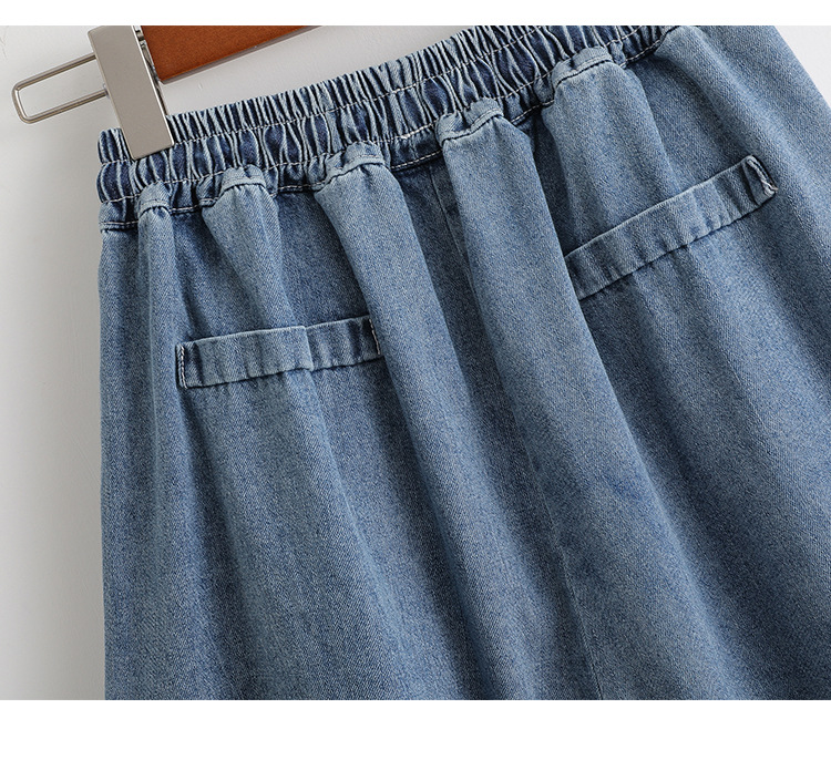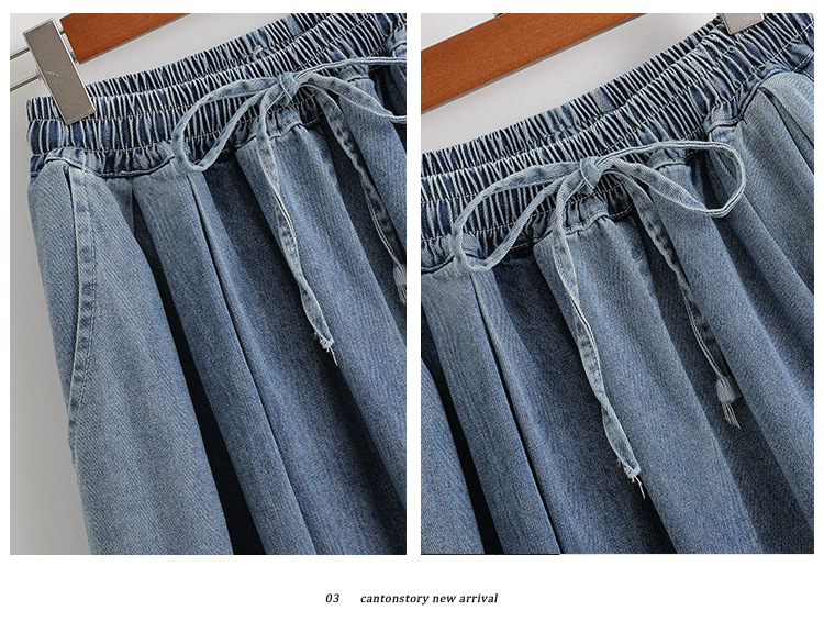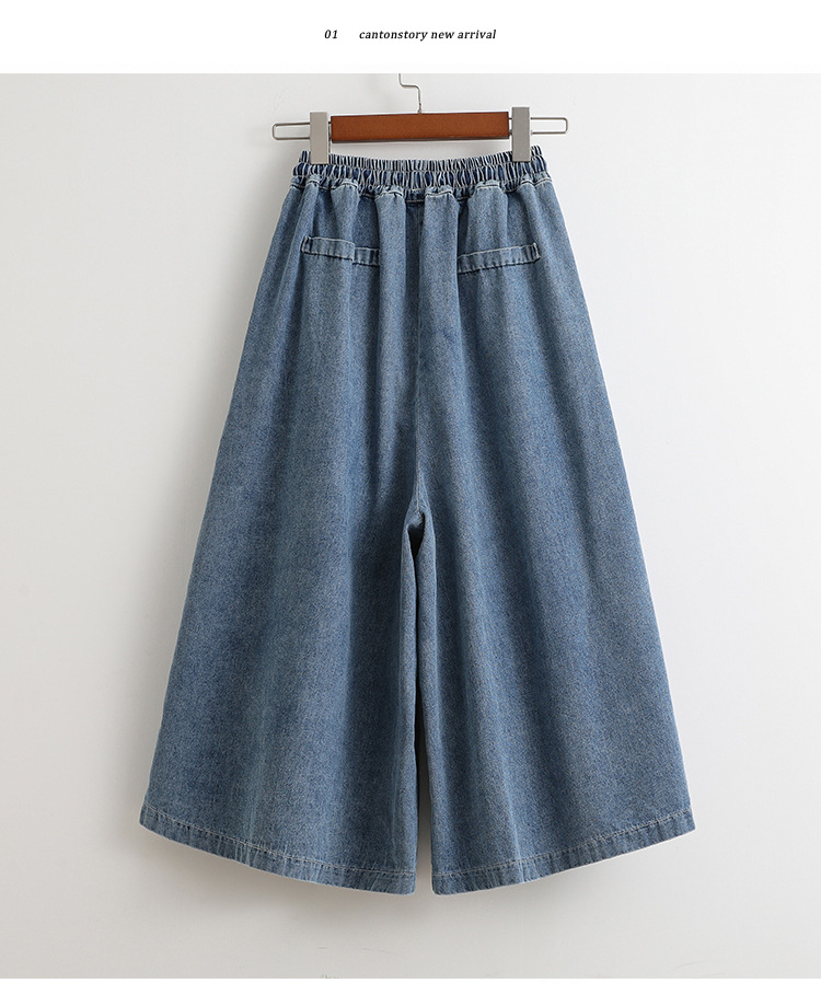 Celana panjang crop untuk wanita, celana rok pinggang elastis ukuran plus, celana Denim kasual modis BF ukuran ekstra besar longgar