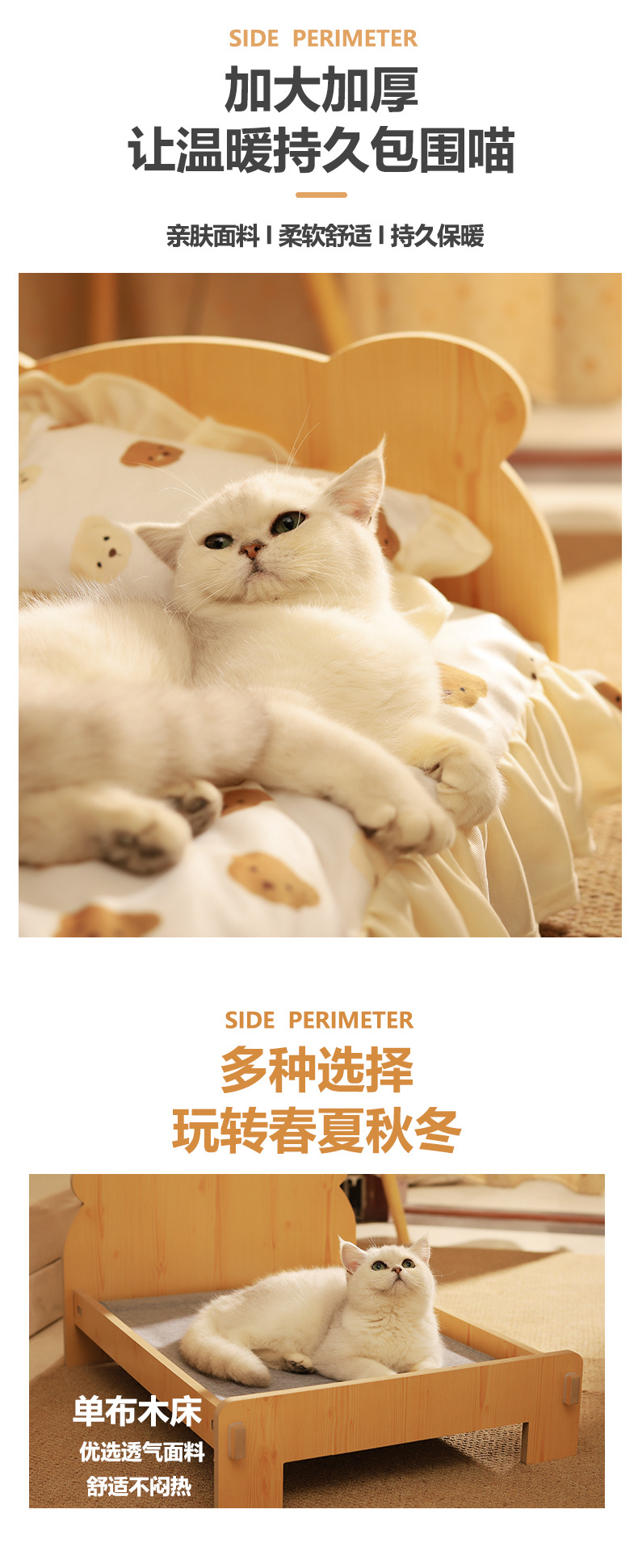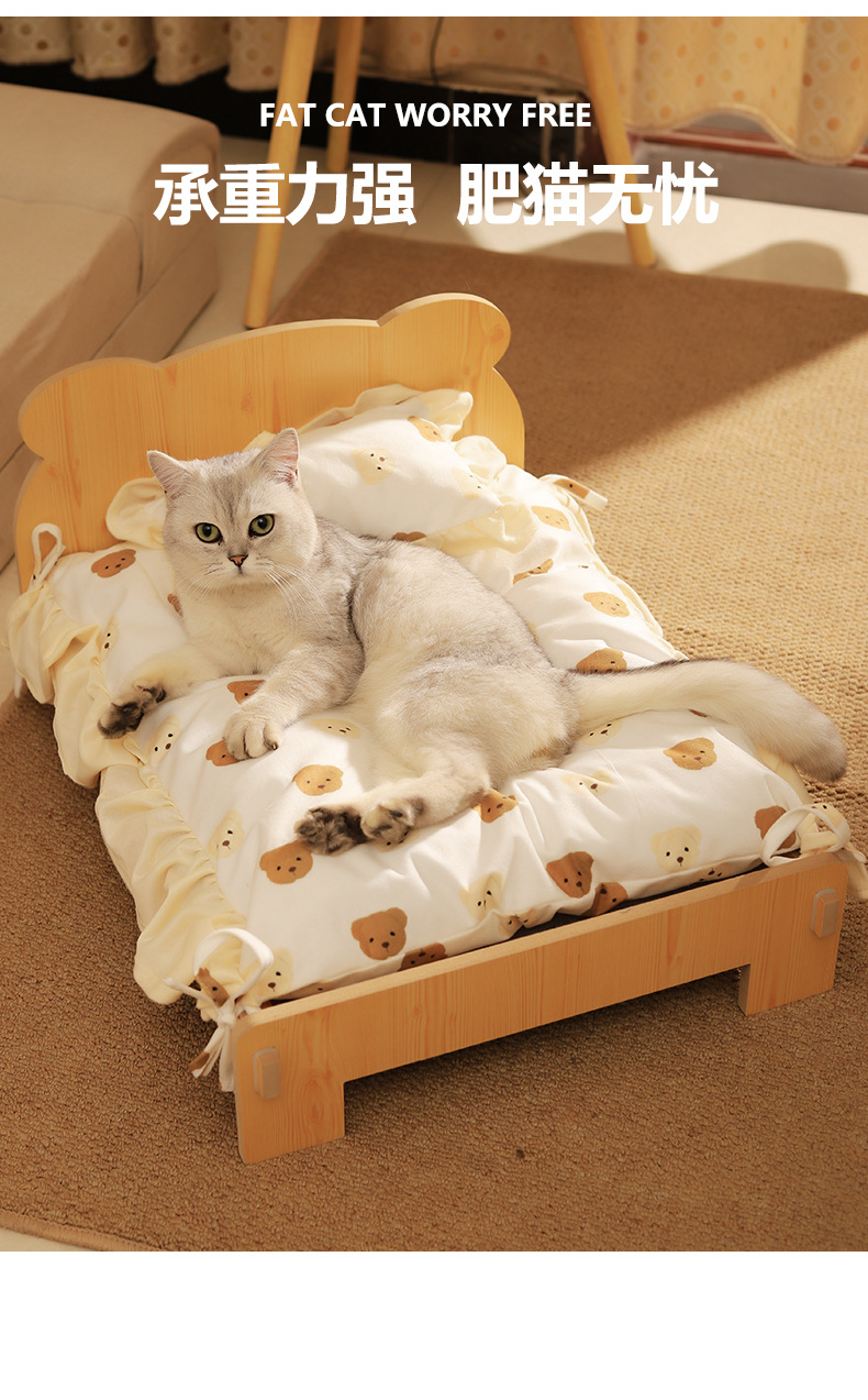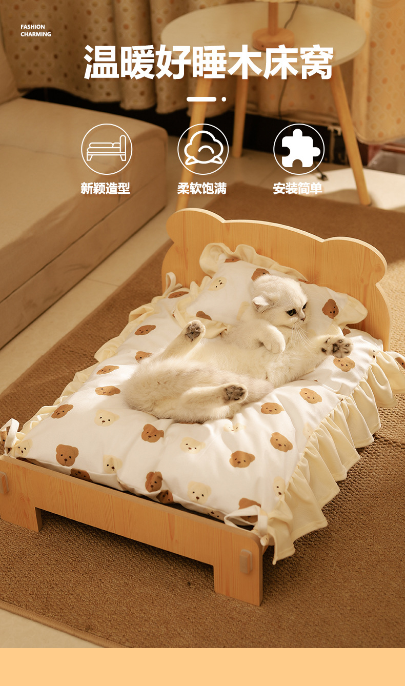 Tempat tidur kucing universal empat musim, tempat tidur hewan peliharaan sarang kucing dapat dilepas dan dicuci kayu polos tempat tidur anak kucing lucu perlengkapan hewan peliharaan