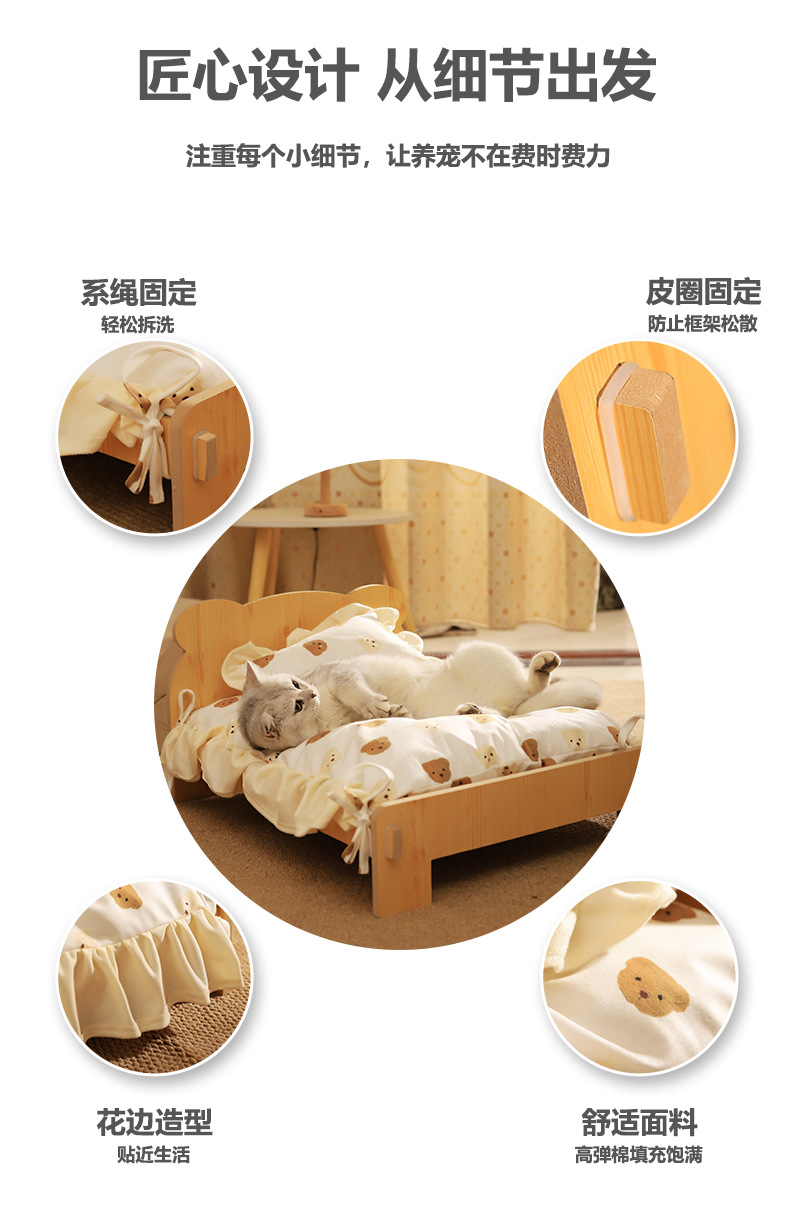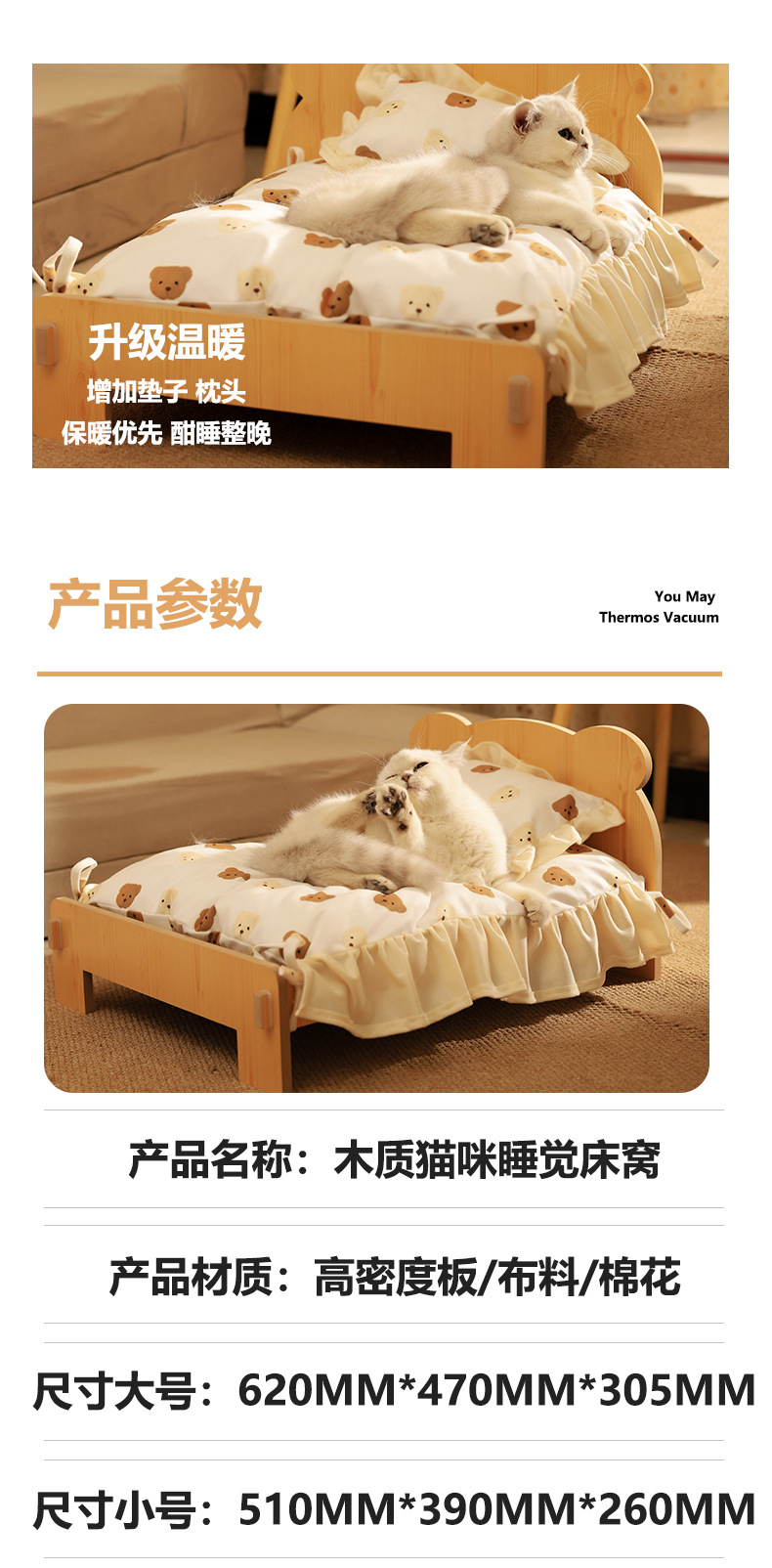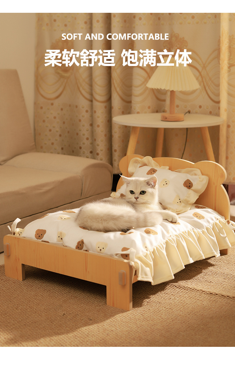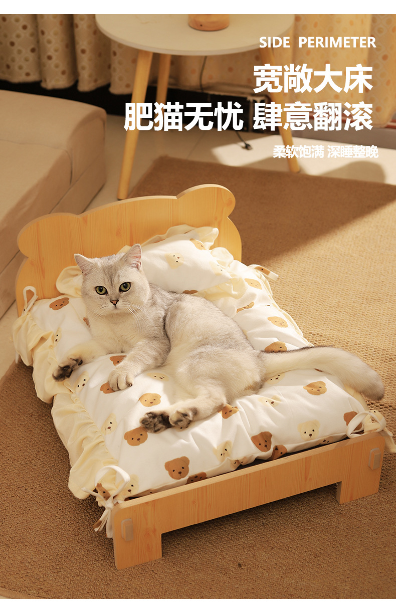 Tempat tidur kucing universal empat musim, tempat tidur hewan peliharaan sarang kucing dapat dilepas dan dicuci kayu polos tempat tidur anak kucing lucu perlengkapan hewan peliharaan