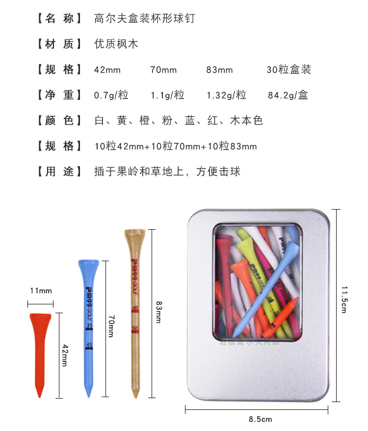 Bola golf kuku skala cup berbentuk maple bola kuku bola golf kotak hadiah jarum 42/70/83mm multiwarna