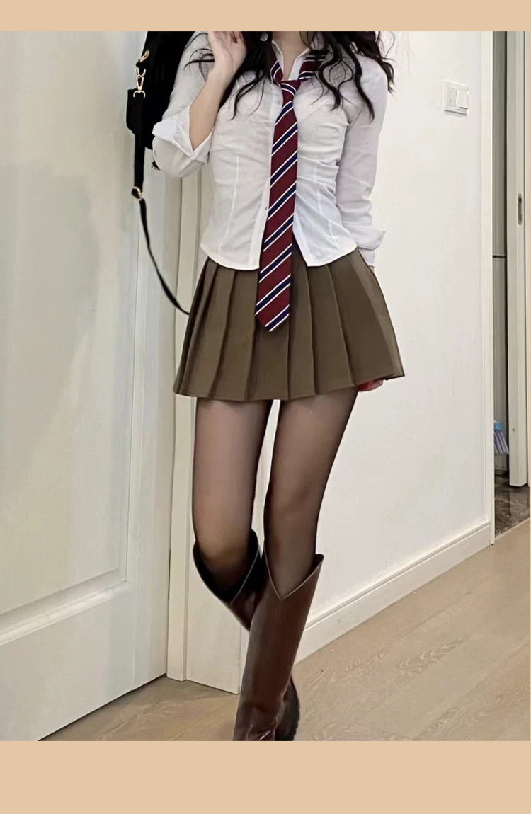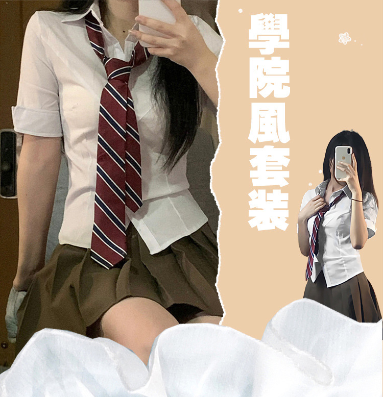 Jk seragam setelan gaya kuliah wanita, atasan bertali pinggang ketat jk lengan pendek