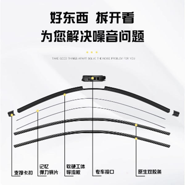 Wiper strip karet dua lapis grosir antarmuka multi-fungsi khusus pisau wiper universal mobil senyap tanpa tulang dropshipping
