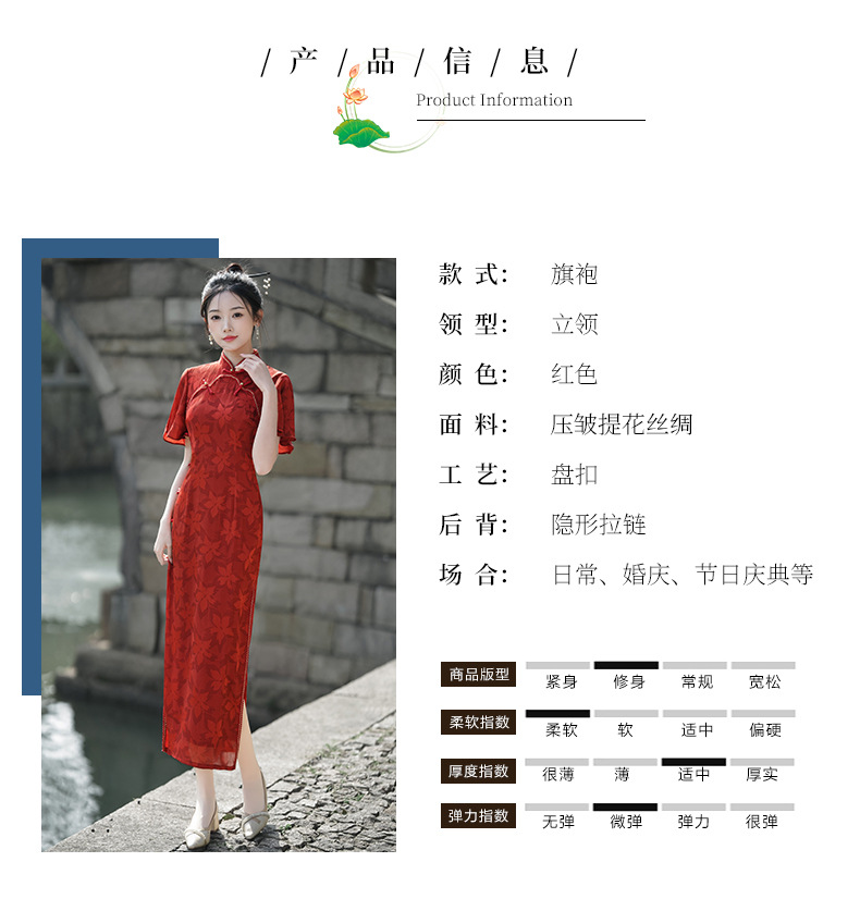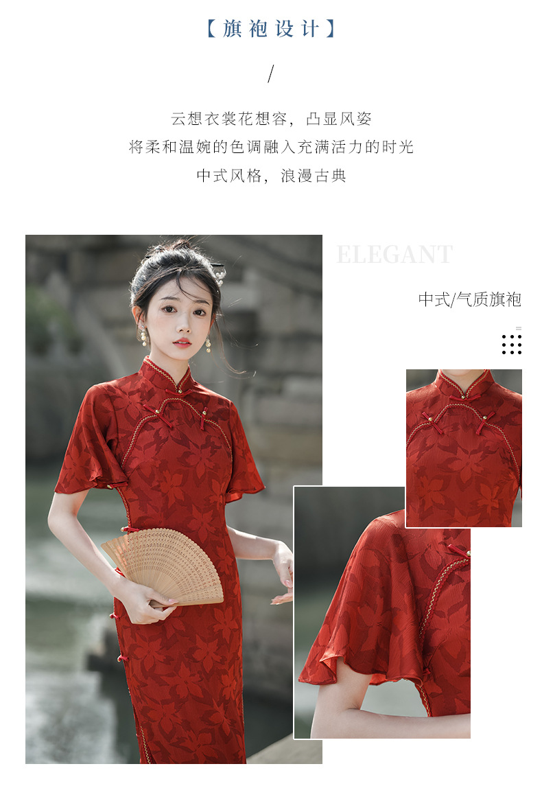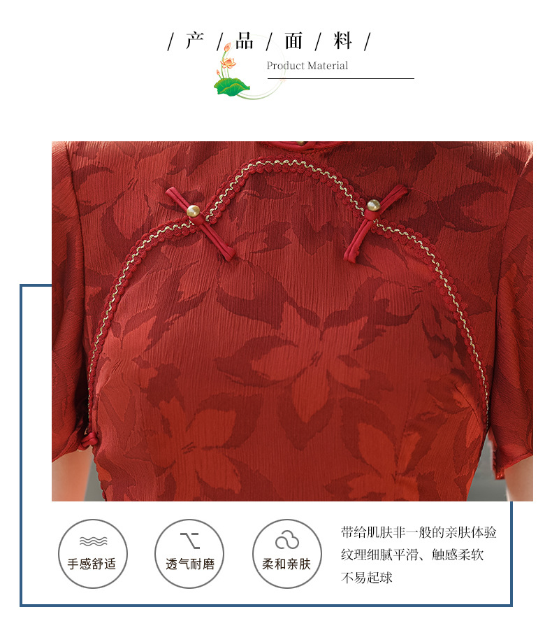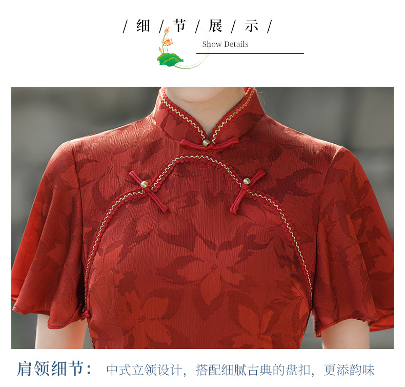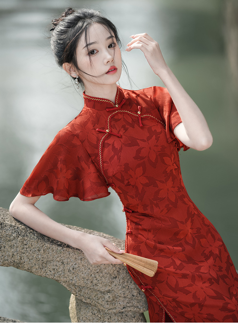 Musim panas embun musim semi dan musim panas 2024 baru ditingkatkan cheongsam muda harian ramping pinggang tinggi elegan gaun merah pakaian roti untuk wanita