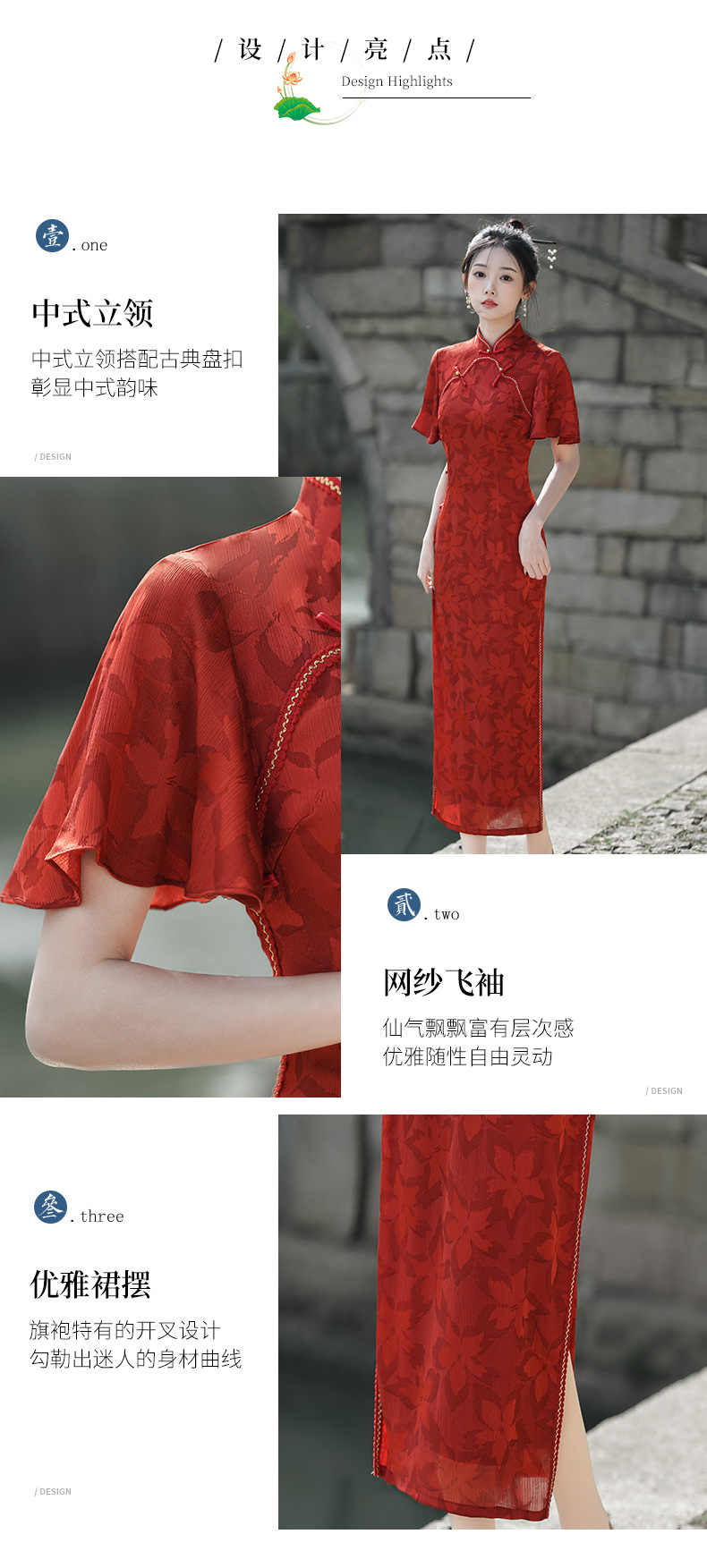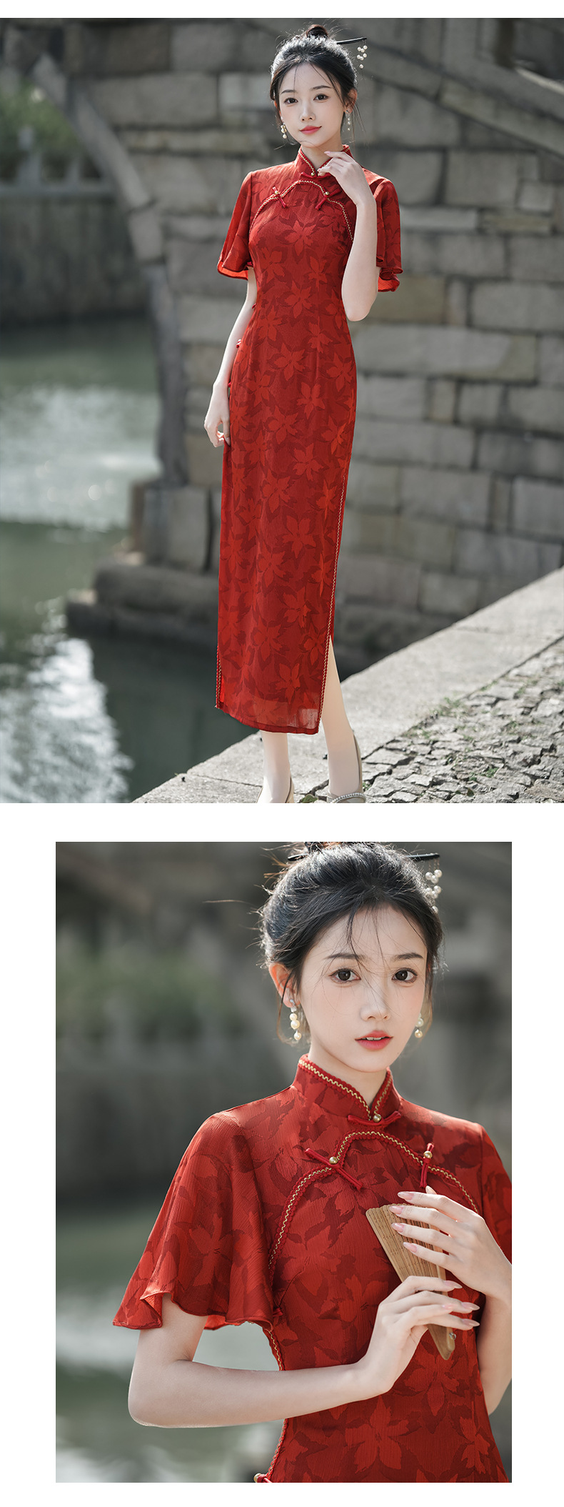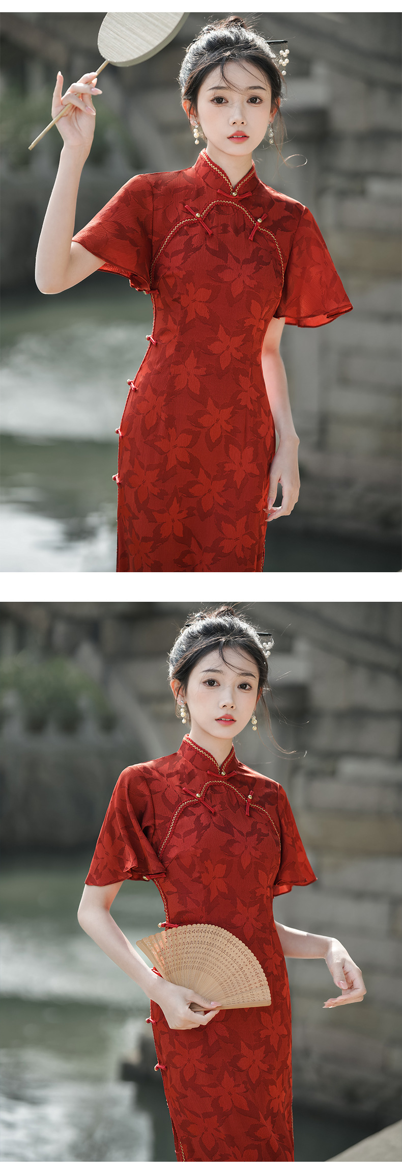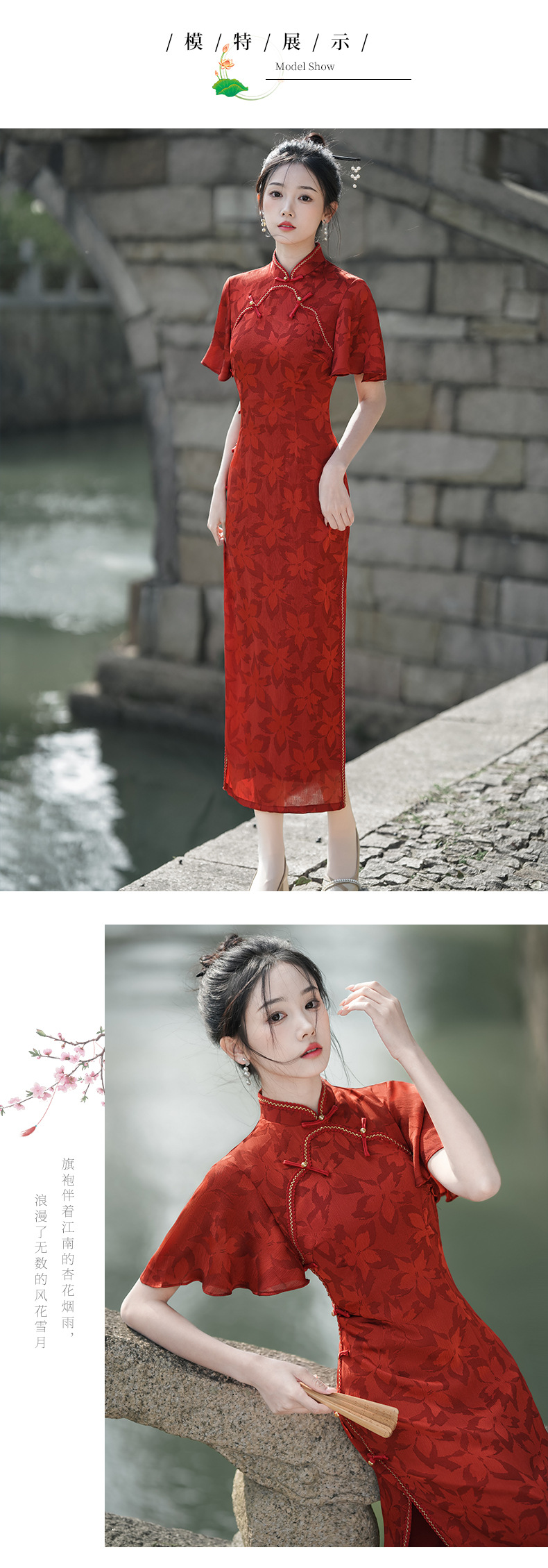 Musim panas embun musim semi dan musim panas 2024 baru ditingkatkan cheongsam muda harian ramping pinggang tinggi elegan gaun merah pakaian roti untuk wanita