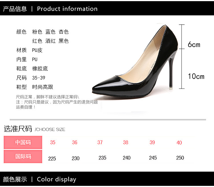 Sepatu hak tinggi stiletto nude stasiun Eropa sepatu kerja ujung lancip kulit paten wanita sepatu ukuran besar merah sepatu pernikahan