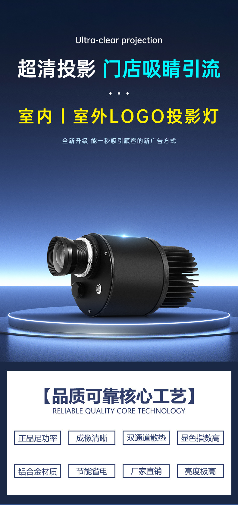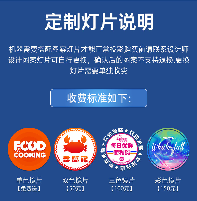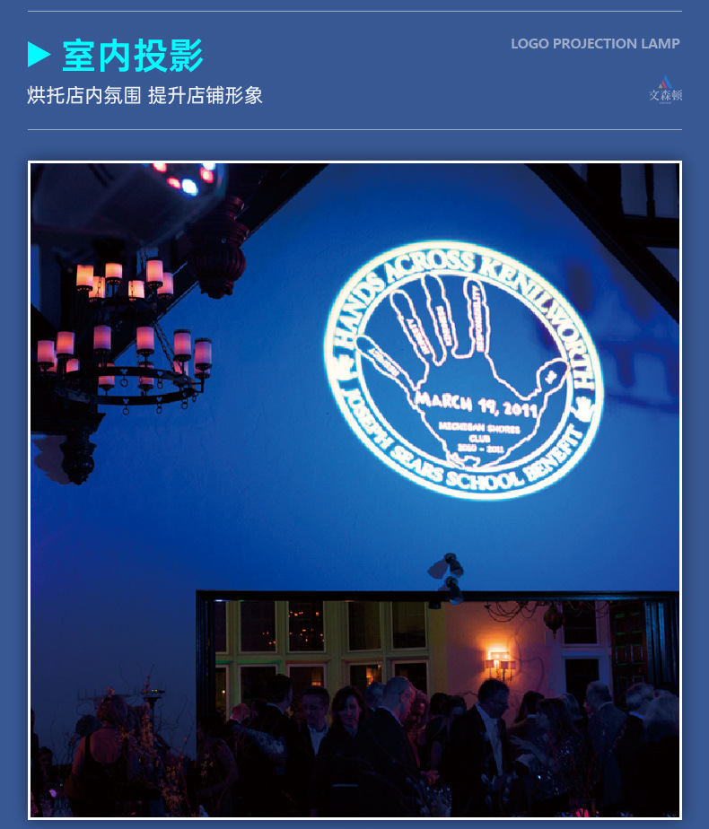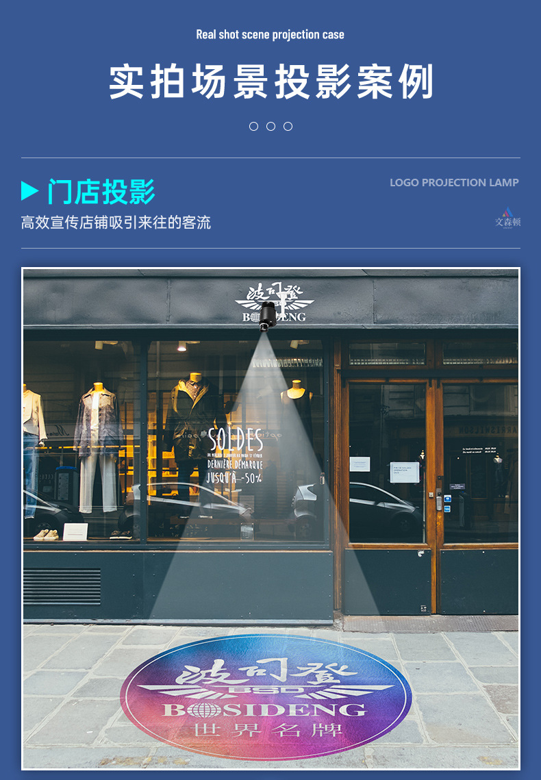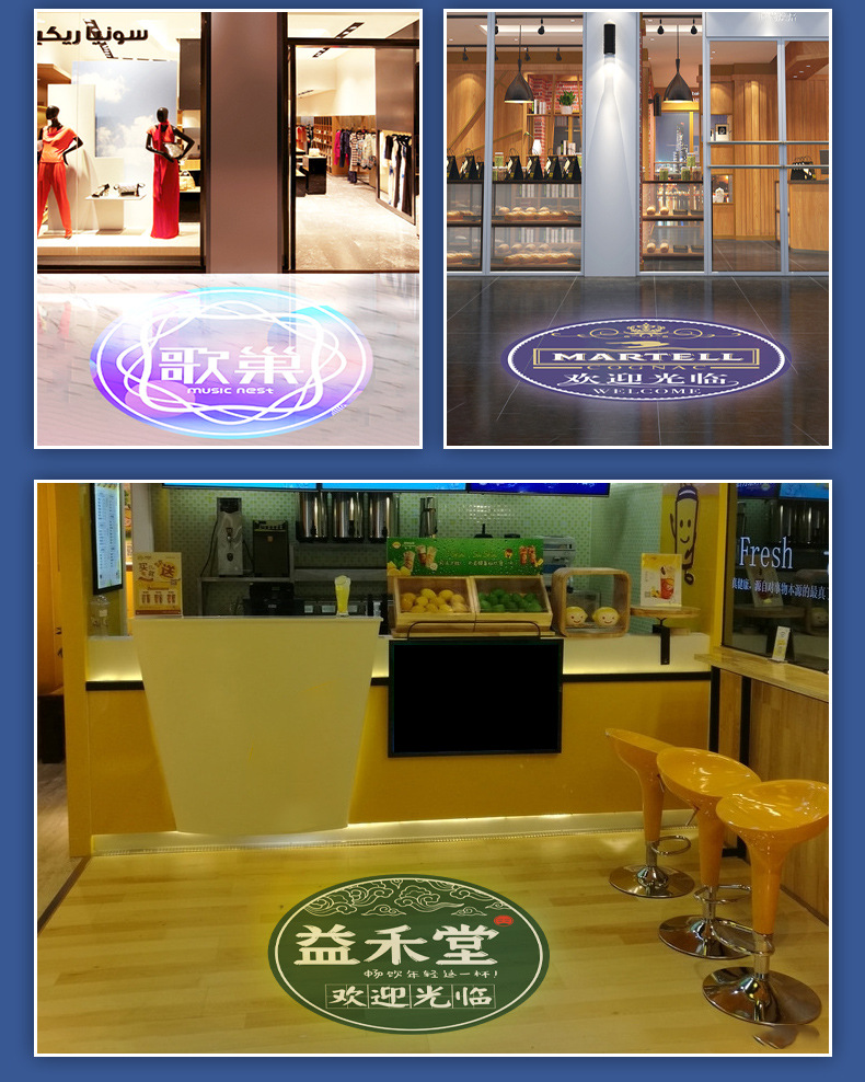 Lampu proyeksi logo iklan HD led, lampu pintu papan nama luar ruangan pola lantai toko teks lampu proyeksi holografis