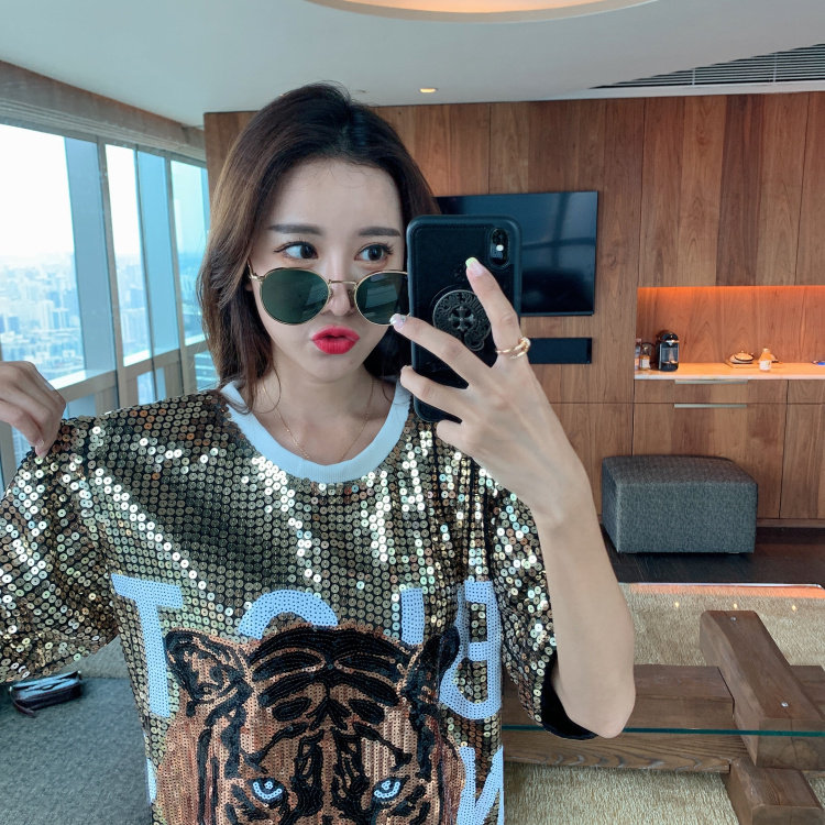 Selebriti Internet Kaus Gaya Hong Kong Wanita Lengan Pendek Serbaguna In Trendi Longgar 2025 Musim Semi dan Musim Panas Barang Eropa Versi Besar Atasan Panjang Menengah Pakaian Musim Panas