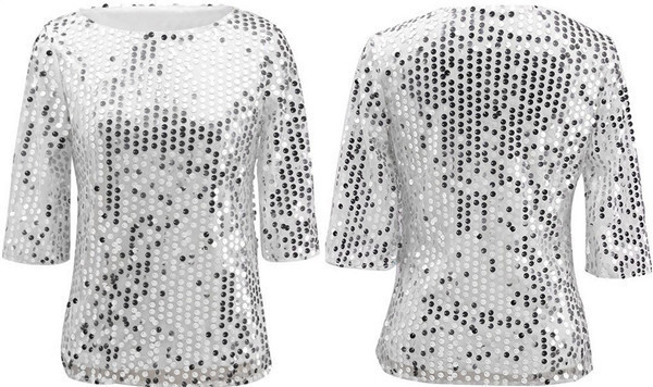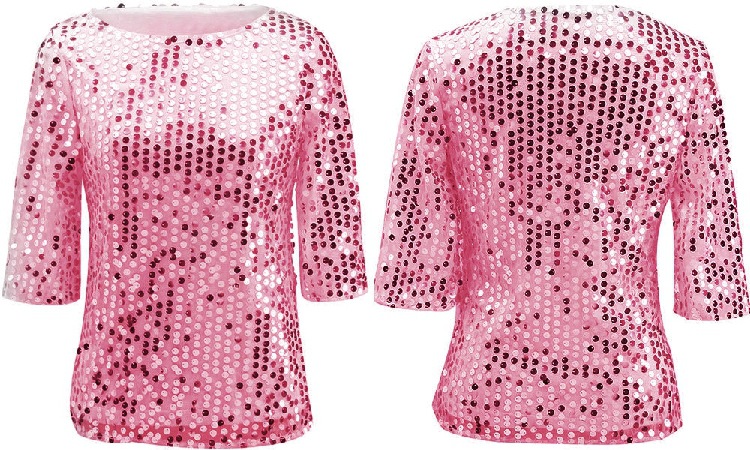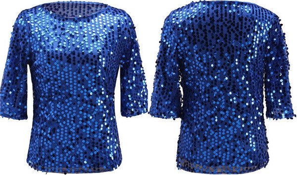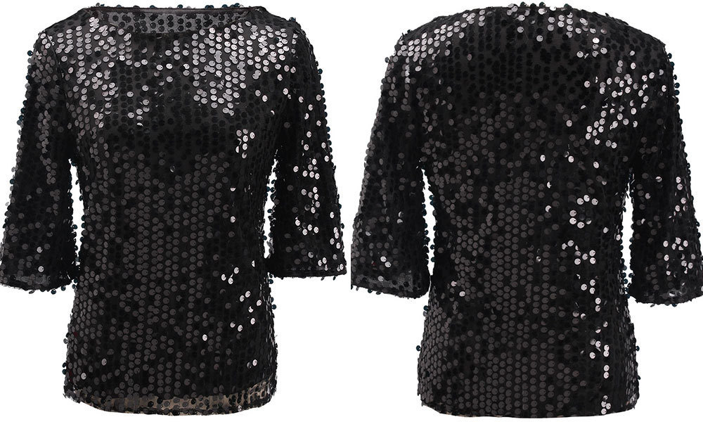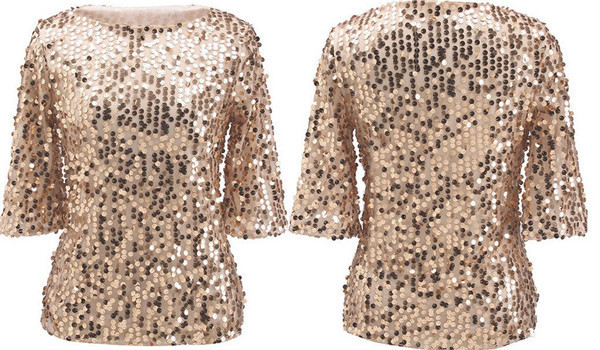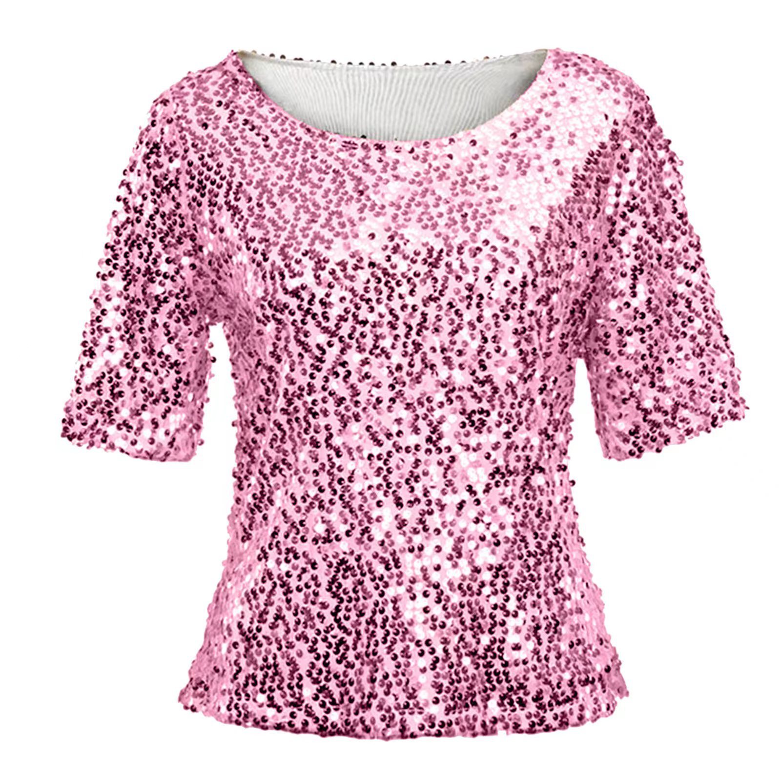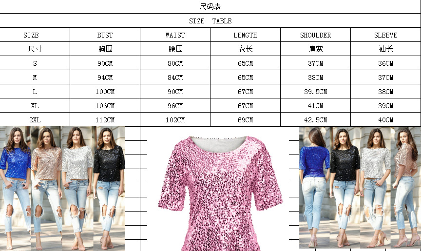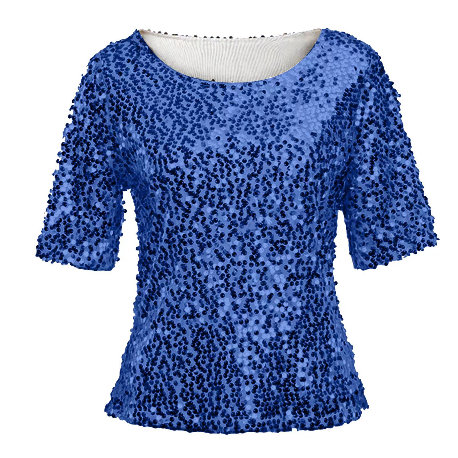 2024 keinginan baru ebay kaus leher bulat berpayet warna polos mode seksi Eropa dan Amerika untuk wanita
