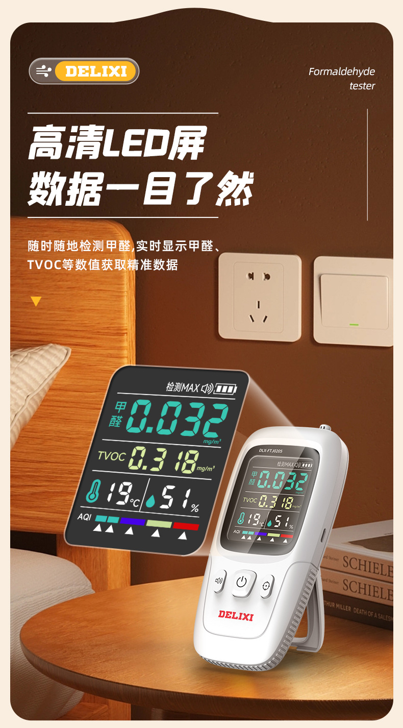 德力西甲醛检测仪自测高精度甲醛仪专业家用室内空气质量检测仪批发