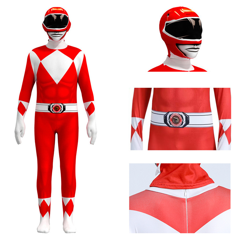 Celana ketat tim dinosaurus overlord Dragon Emperor tim luar biasa harimau putih jumpsuit cos pakaian performa panggung merah dan biru