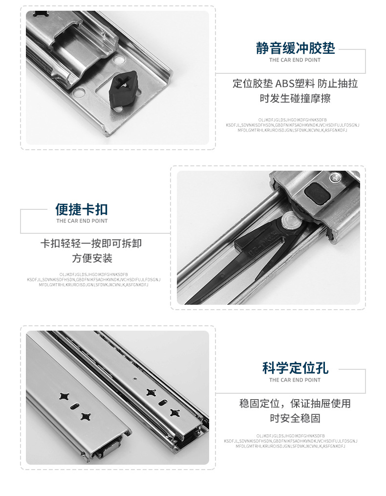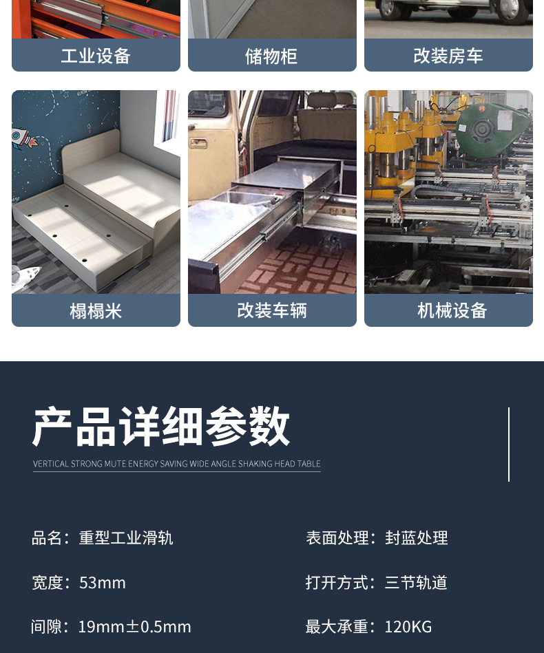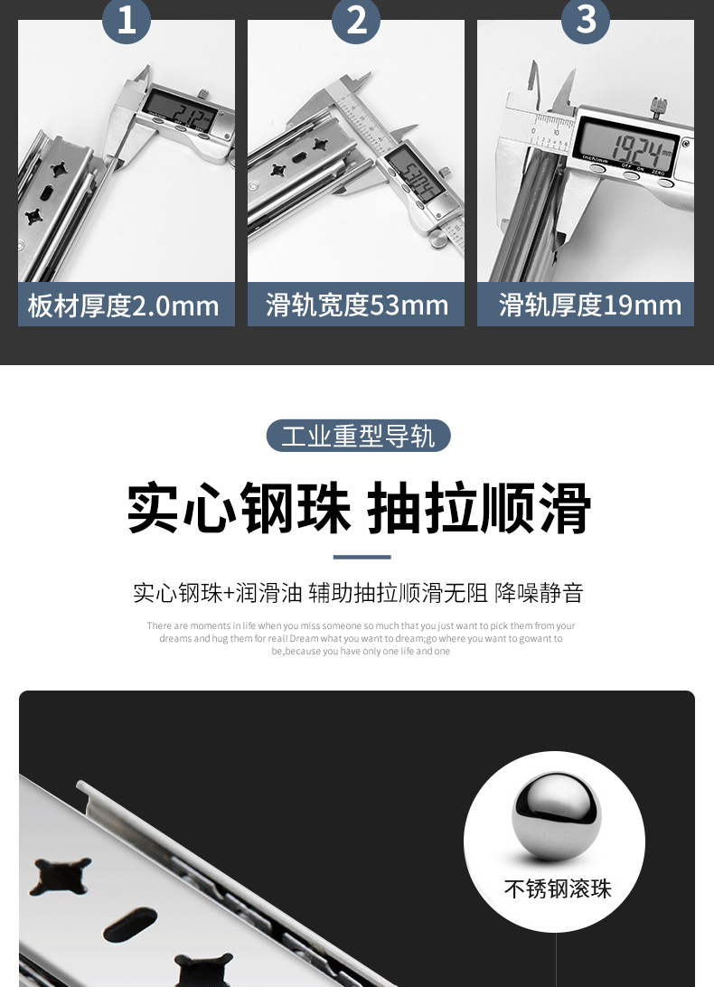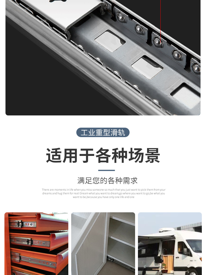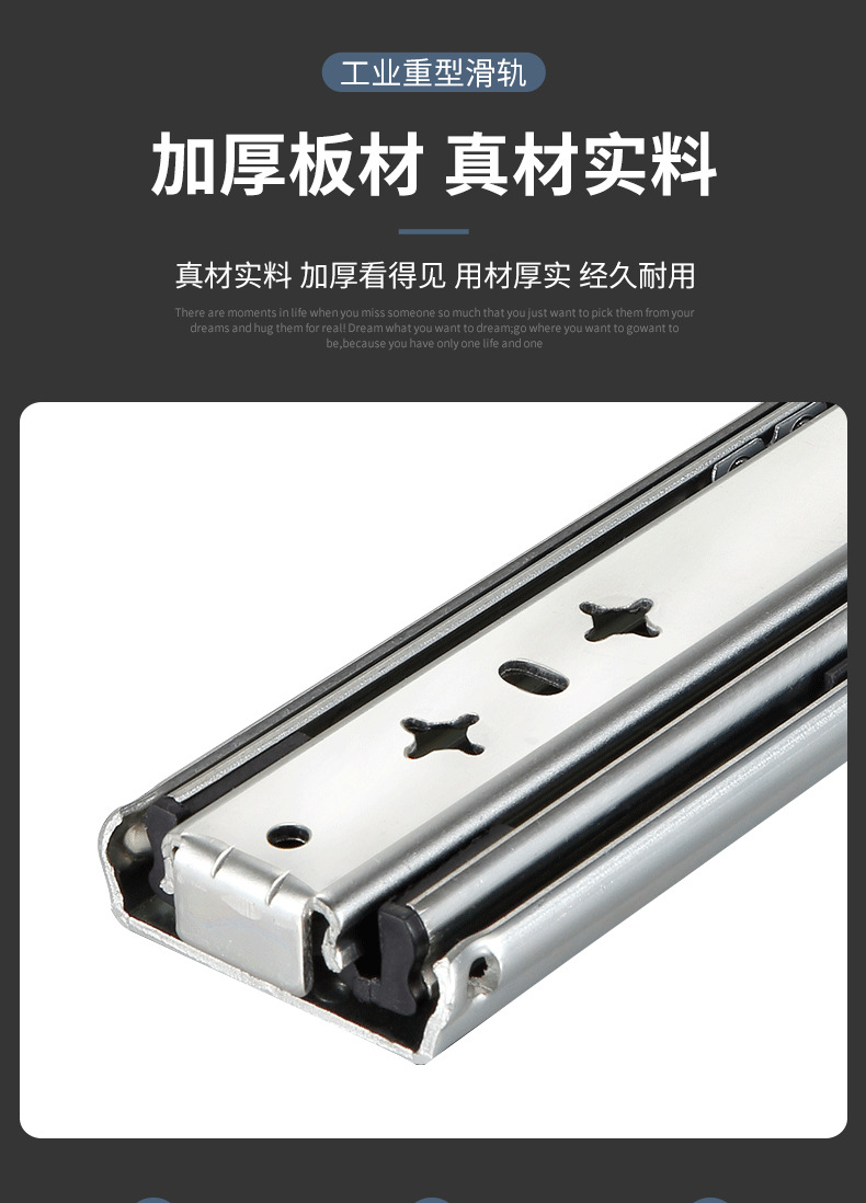 Rel beban jalur berat dipertebal 2.0 lemari sepatu rv tiga bagian Laci rel perangkat keras geser industri