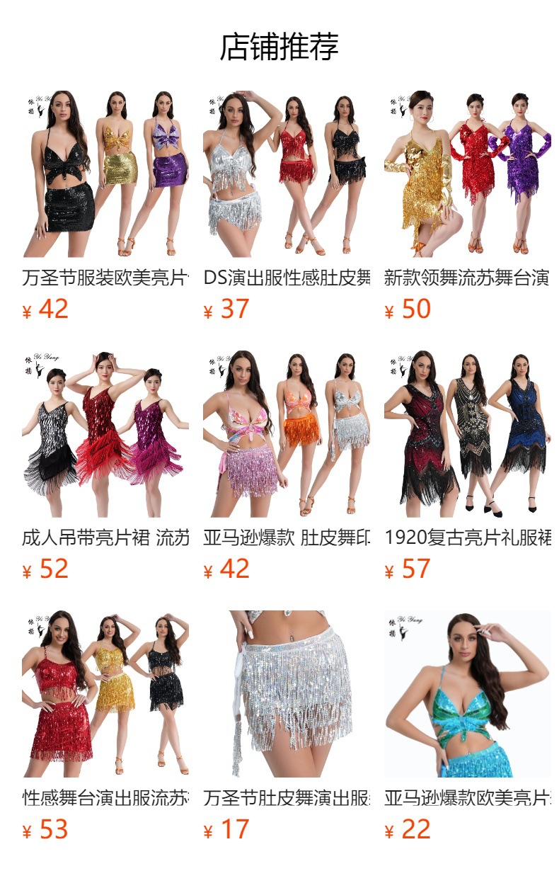 Baru dewasa dansa Latin musim semi rok rumbai berpayet gaun dansa rok pesta kostum pentas panggung kostum kompetisi