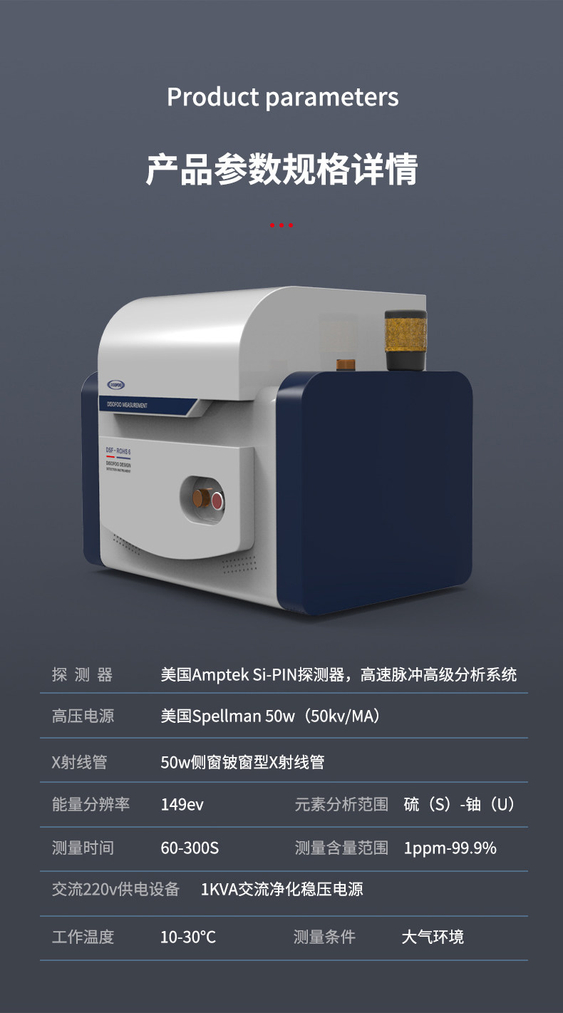 X-ray fluoresensi spektrometer ROHS1.0 analisis elemen dari enam zat berbahaya 2.0 dispersi energi fluoresensi spektrometer