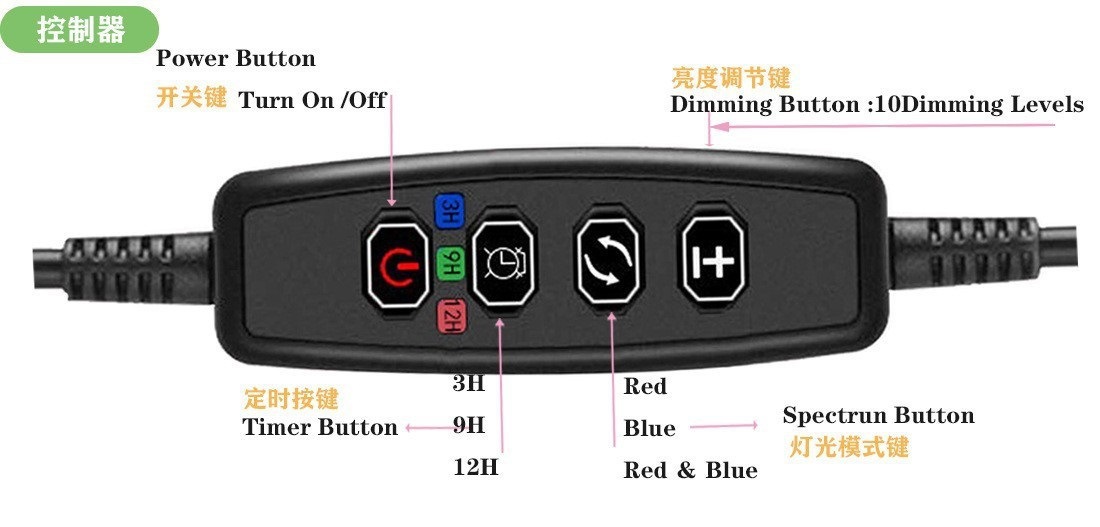 9级调光 :10% 20% 30% 40% 50% 60% 70% 80% 90% ;