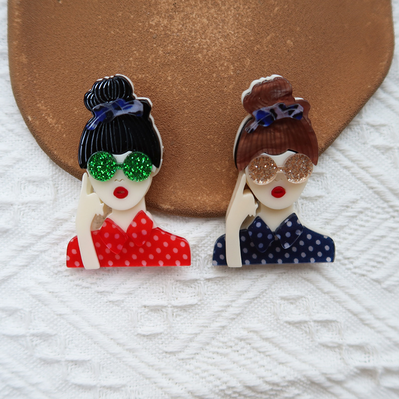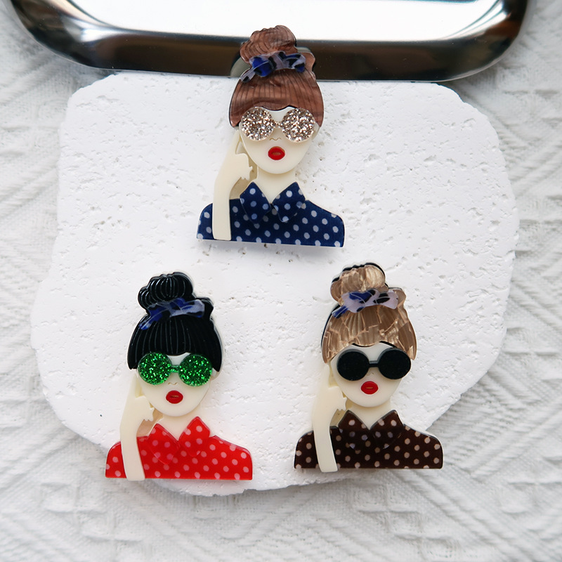 Yiai Eropa dan Amerika populer akrilik multiwarna bros mode kepribadian kacamata pendukung aksesoris pakaian korsase anak perempuan